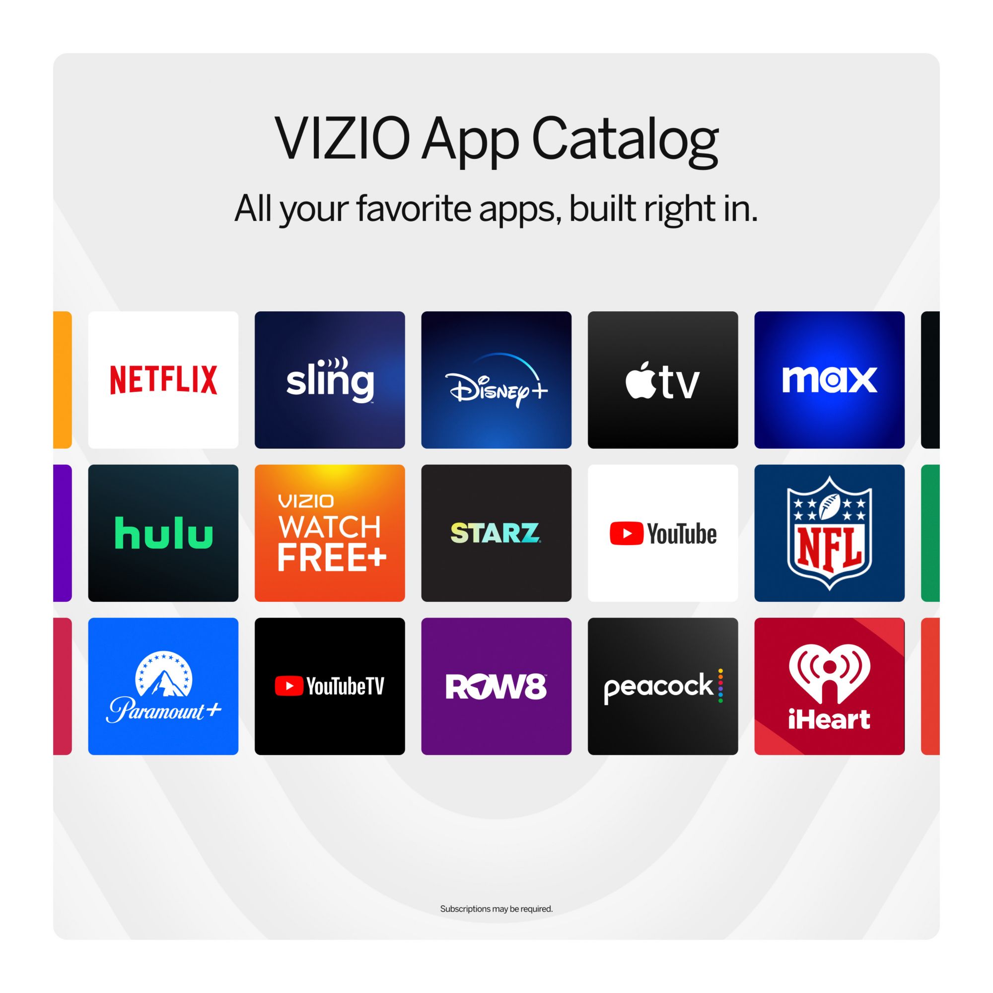 The third-party applications referenced here may only be available in certain countries and languages, may require additional fees or subscription charges, and may be subject to future updates, modifications, interruption and/or discontinuation of service without notice. App services featured here may not be available in all regions. VIZIO assumes no responsibility for such applications and content. 4K or HDR availability varies by app and may be subject to subscription fees, Internet service, and device capabilities. Additional third-party terms, conditions and restrictions apply. Visit vizio.com/smartcastapp for system requirements.