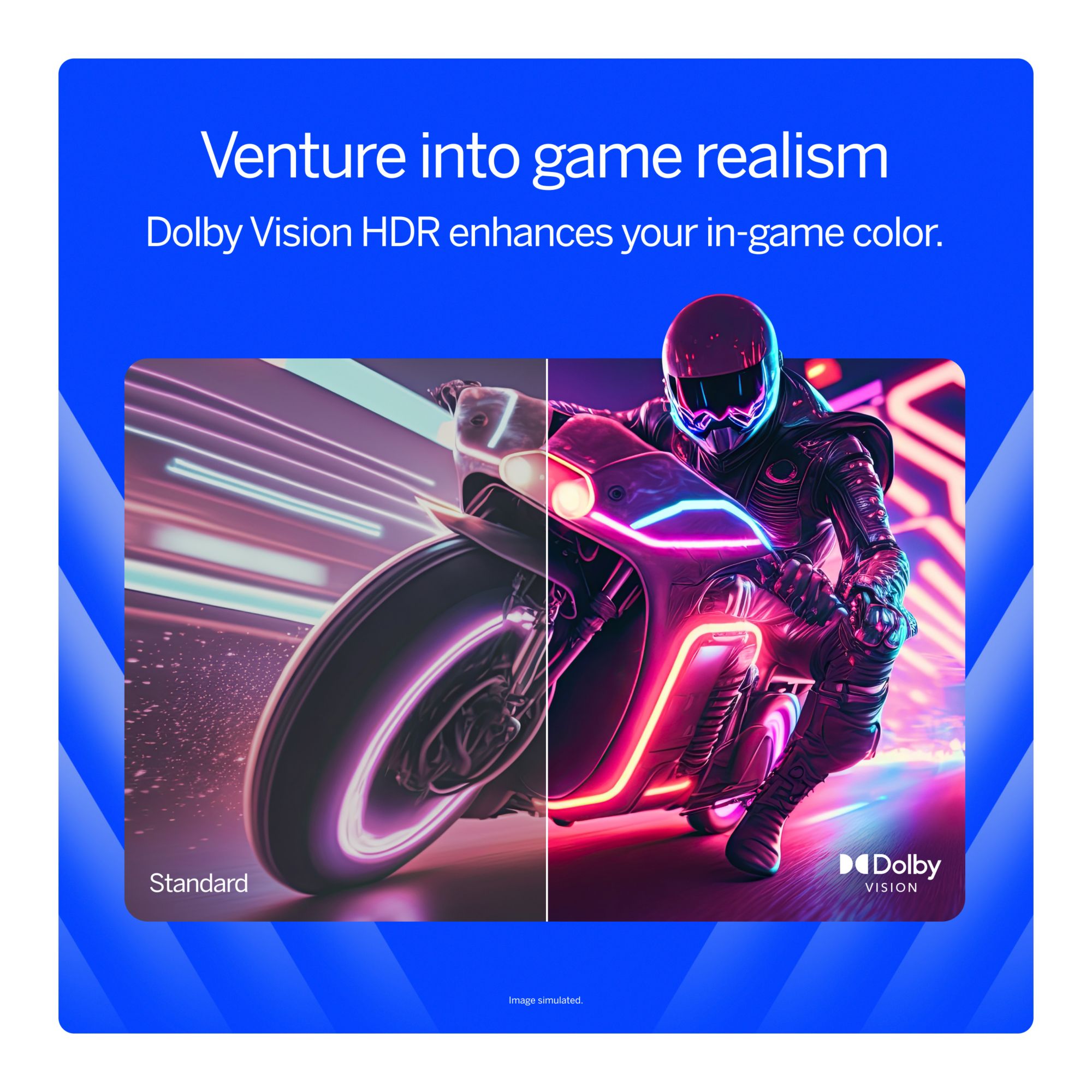 Dolby Vision HDR enhances your in-game color. When a PC or console is detected, it automatically enables Auto Low Latency Mode.