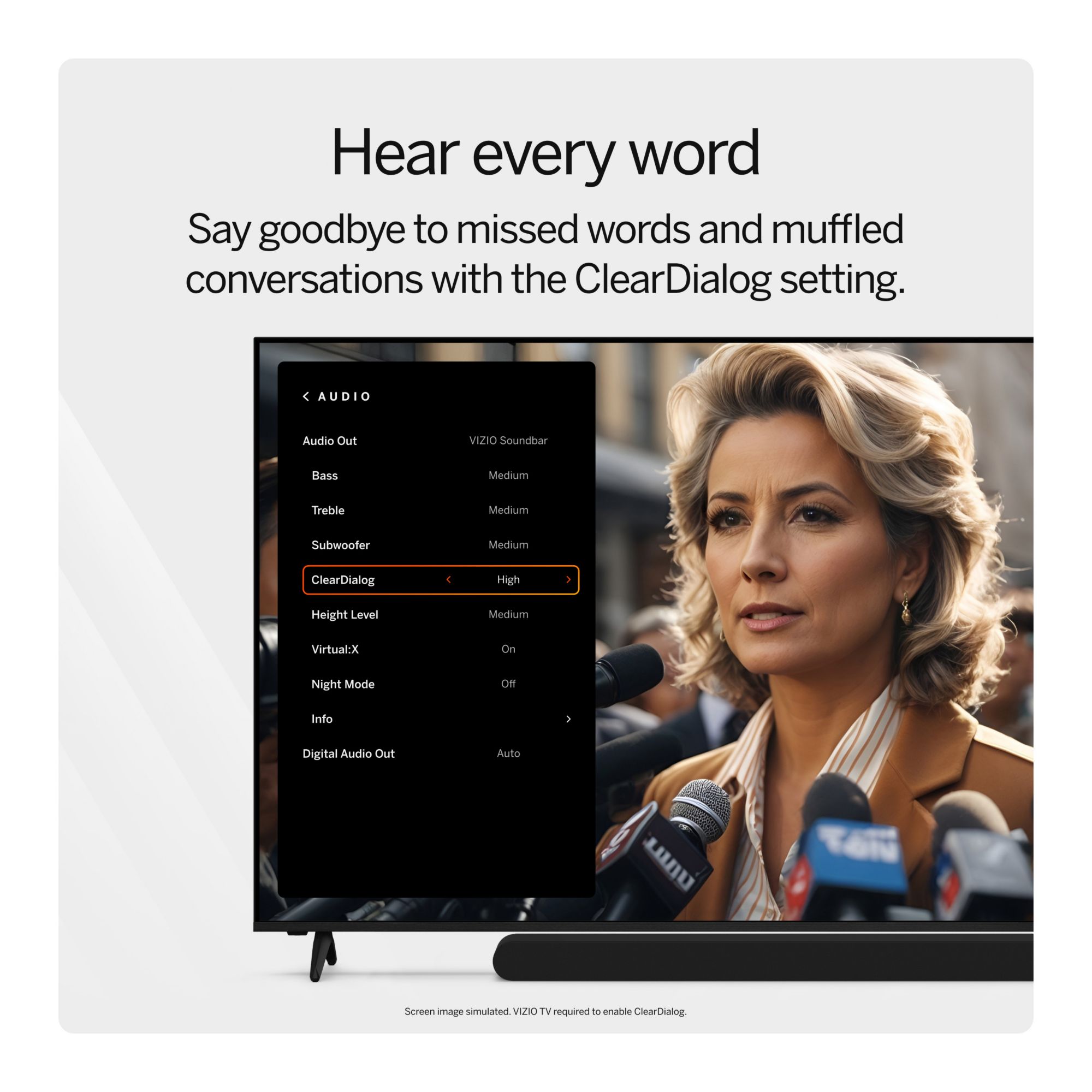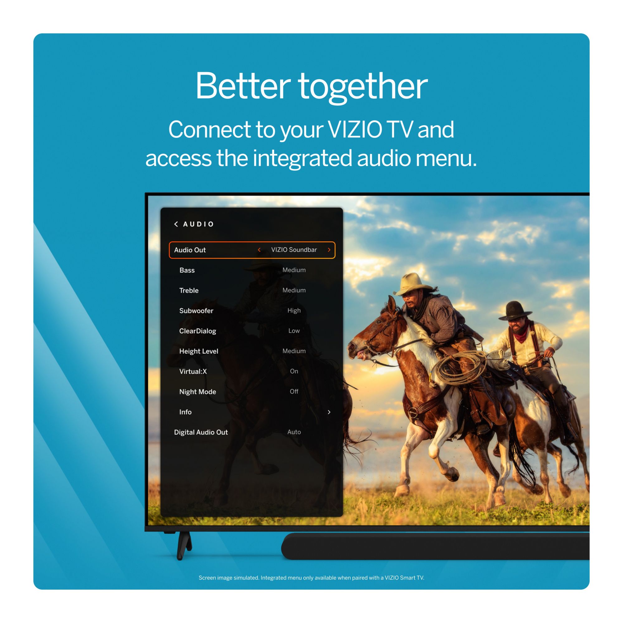 Paired for perfection - When connected to a VIZIO TV, you’ll have instant access to the integrated audio control menu, a big-screen interface that makes adjustments to soundbar settings easier than ever