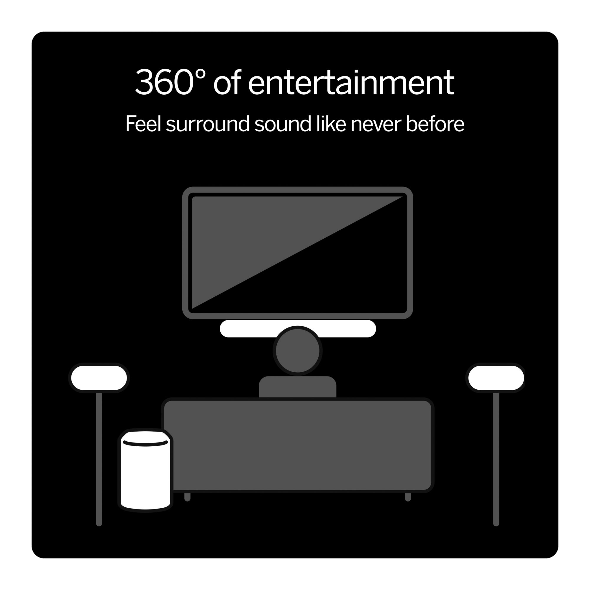 Got you surrounded - A pair of low-profile, full-range surround speakers deliver pinpoint accurate sound behind you for made-you-look movie moments and optimal situational awareness in-game