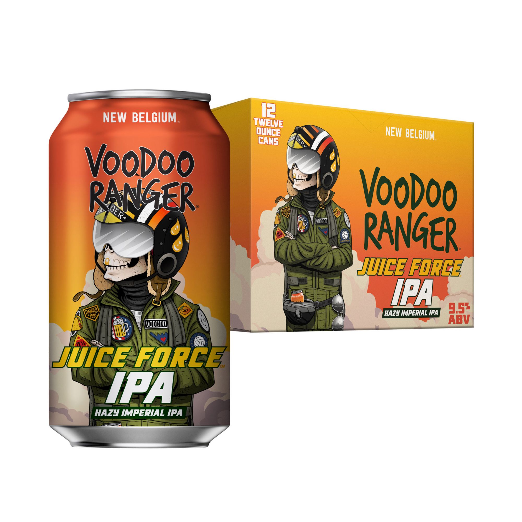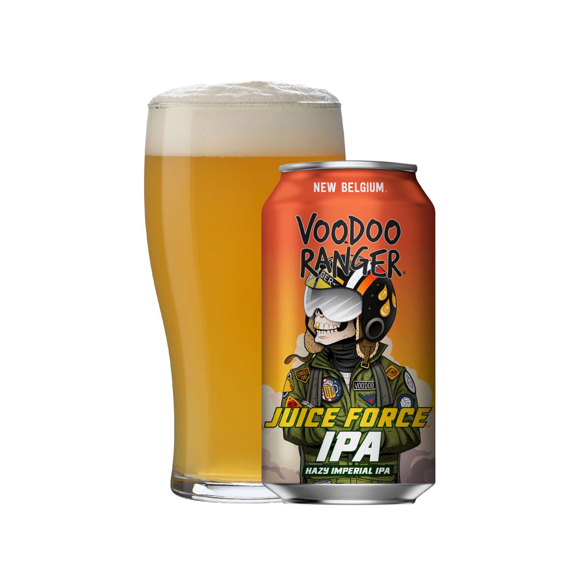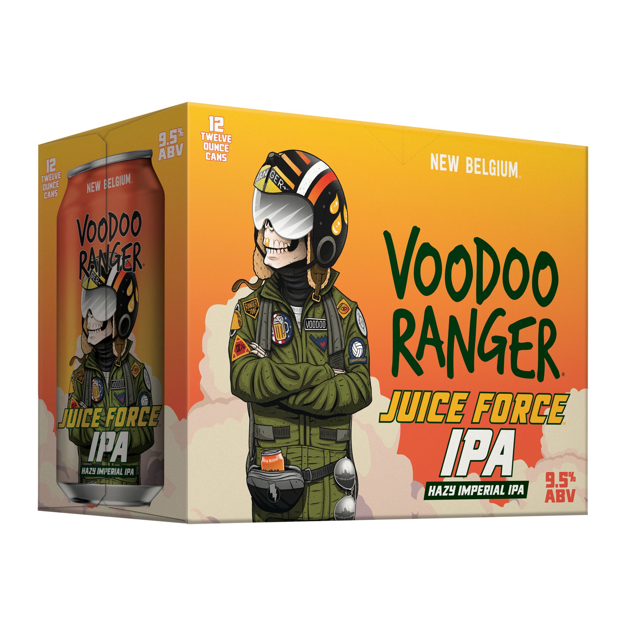 Voodoo Ranger Juice Force Hazy Imperial IPA is a fruit forward, highly drinkable blast. It's a 9.5% ABV IPA that'll send your tastebuds soaring with its brilliant flavor. It is equal parts hazy and fruit forward, making it a balanced yet bold craft beer. This craft IPA pours a cloudy golden-orange and is rich with bright tropical fruit flavors that have just the right amount of juiciness. Brewed by New Belgium Brewing, a certified B-Corp.