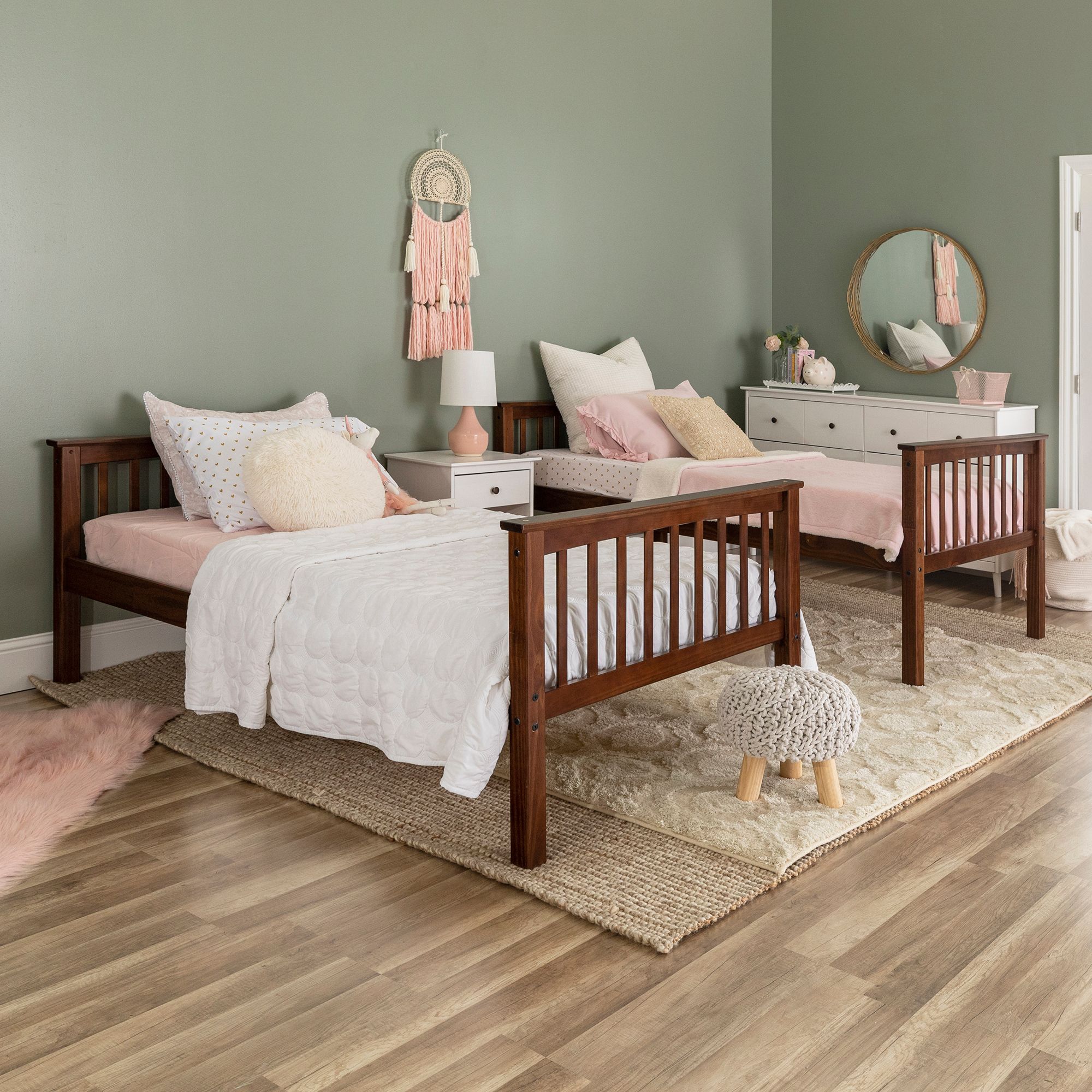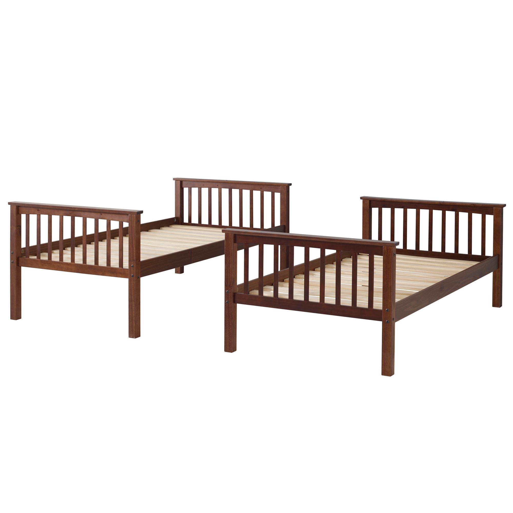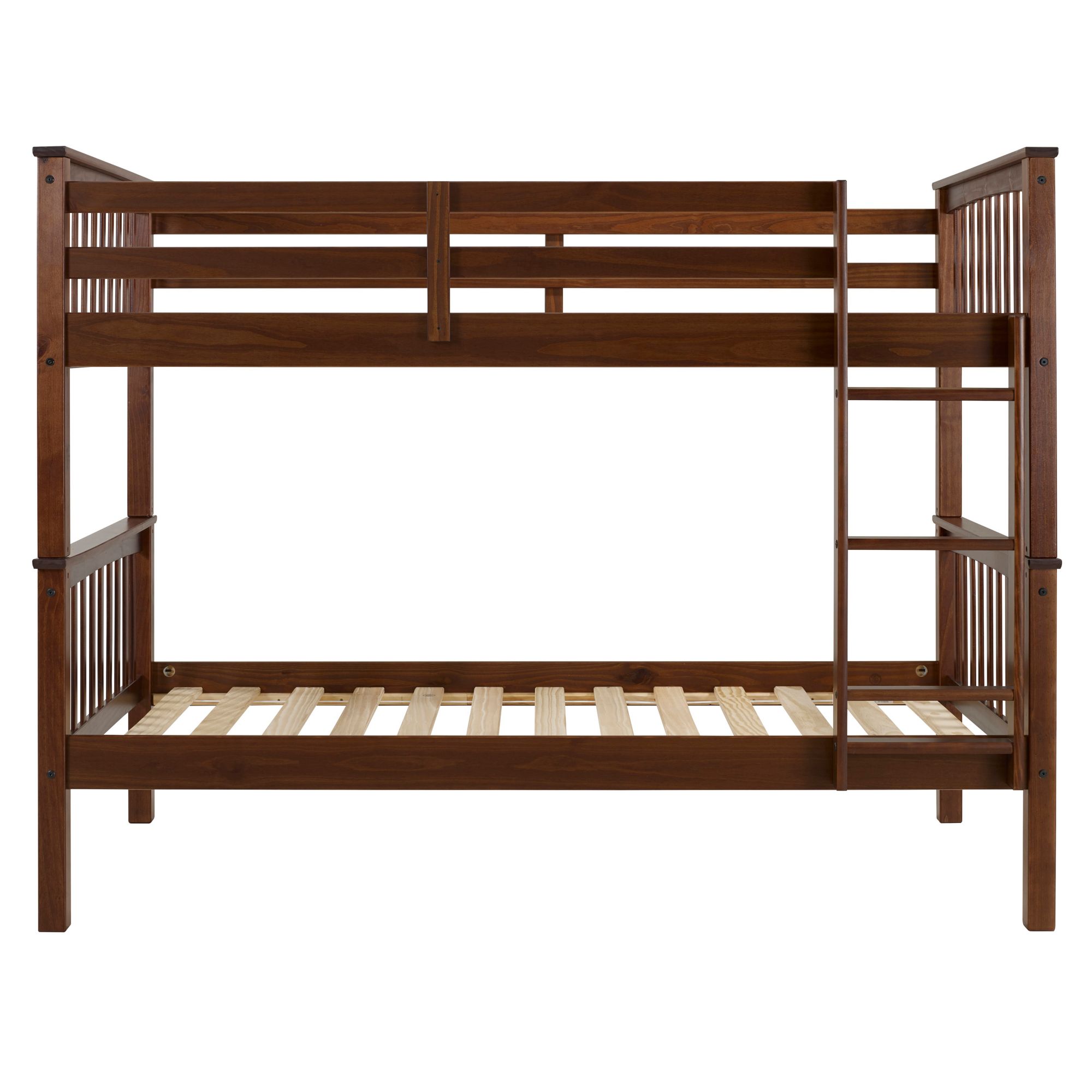 W. Trends Twin Over Twin Mission Style Solid Wood Bunk Bed Frame - Walnut