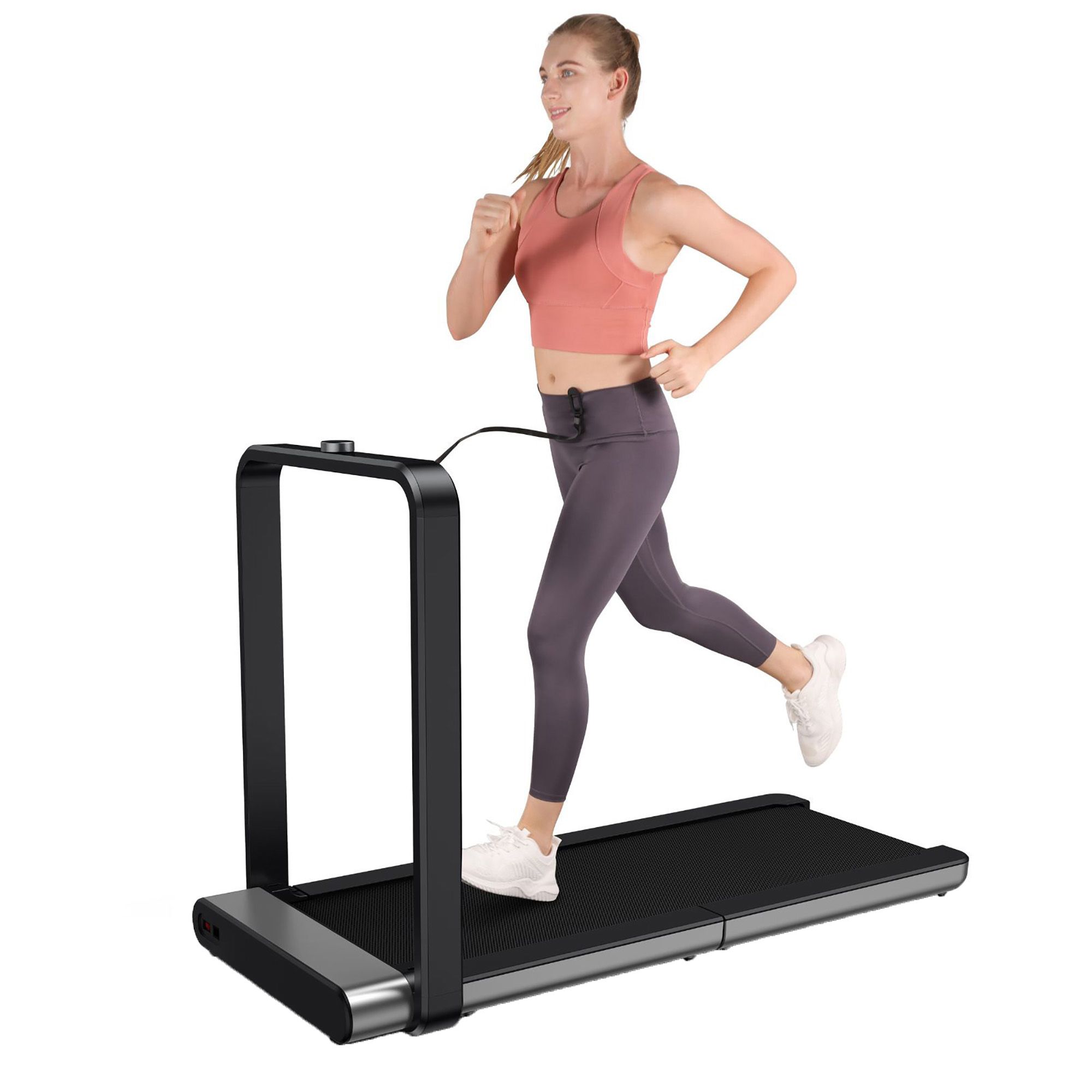 The slim profile of the WalkingPad X21 Double Fold and Stow Treadmill takes up less space in a room than a full sized treadmill. Patented double fold and stow technology reduces the amount of storage space needed when not in use, and ideal space saving solution for home exercise equipment. Download the KS fit app to easily control, adjust, and monitor your stats while walking or running. This X21 treadmill has a digital display knob that is integrated into the handrail. The display shows speed, distance, calories burned, and time during exercise, with a running speed range up to 7.5mph. A detachable phone/tablet holder is included so you can monitor your stats through the KS fit app on your mobile device, or listen to favorite tunes or podcast. The X21 is equipped with a brushless motor that reduces noise level up to 75 decibels. Multi-layer cushioned track belt eases stress to ankles and knees. Minor assembly required.
