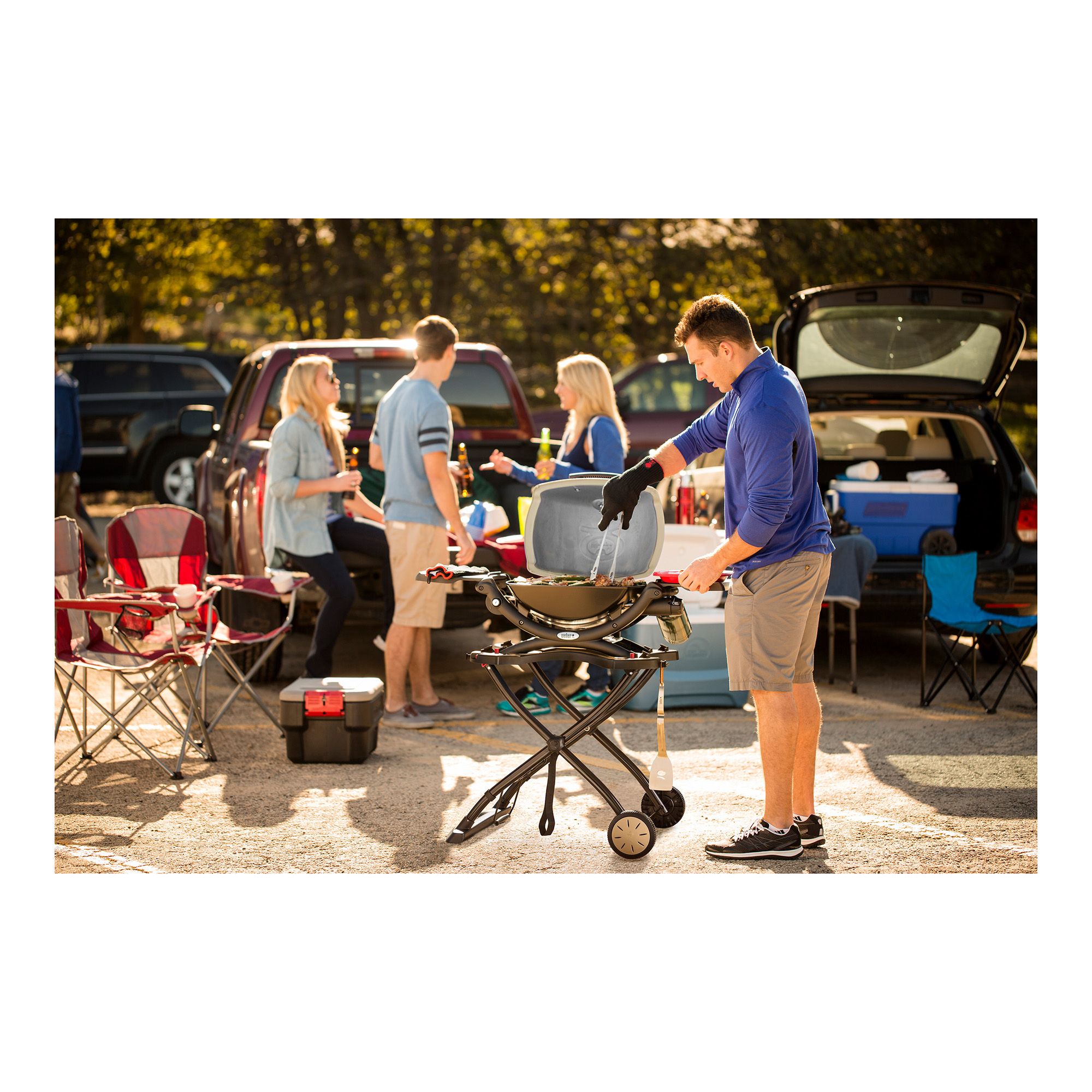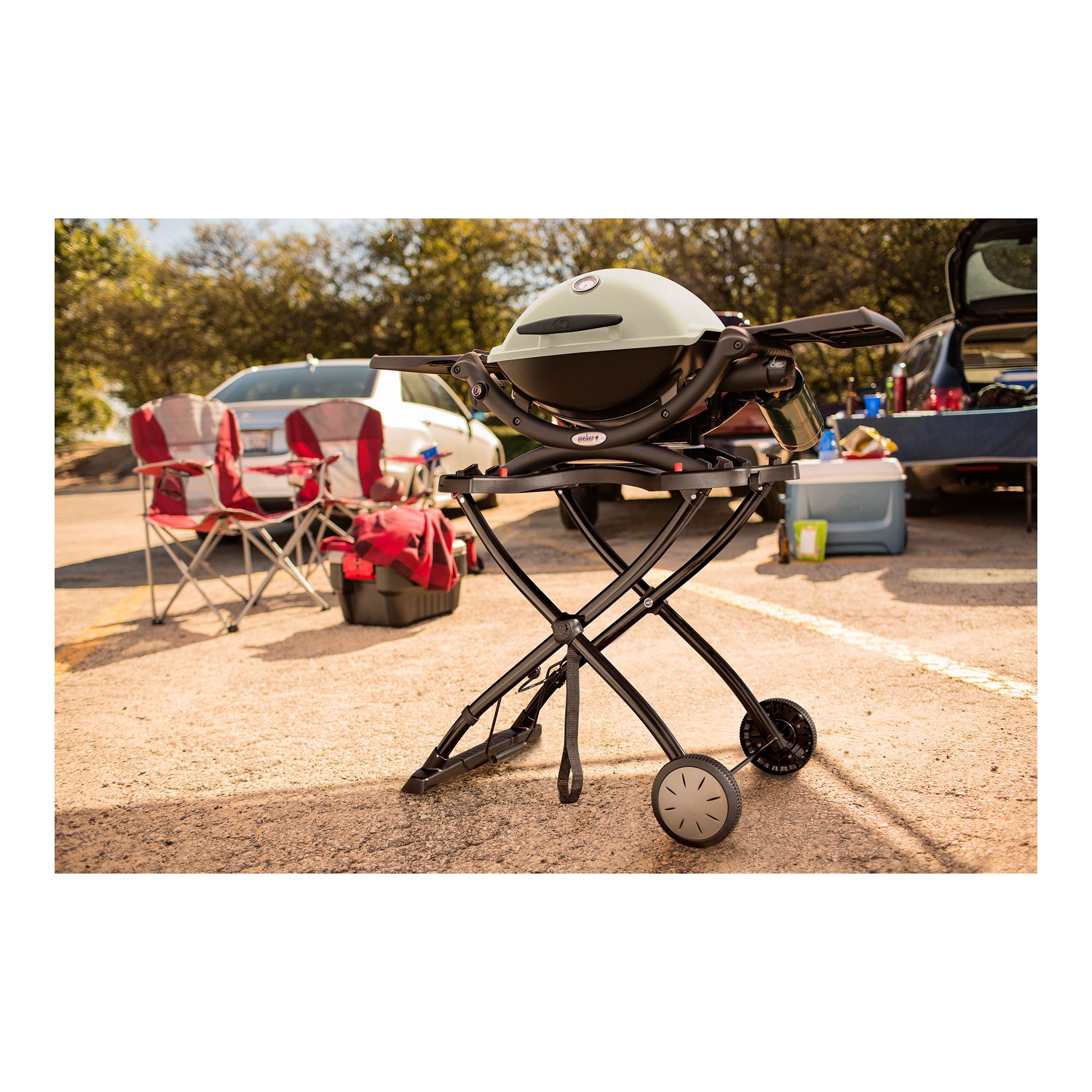 Grill without boundaries with the Weber Q Portable Gas Grill Combo Pack. Go hiking in nature with a grill as vibrant as the scenery. Travel on or off the beaten path, camp in the woods or near the shore. Explore the world with big taste and your Weber Q 1200 portable gas grill by your side.