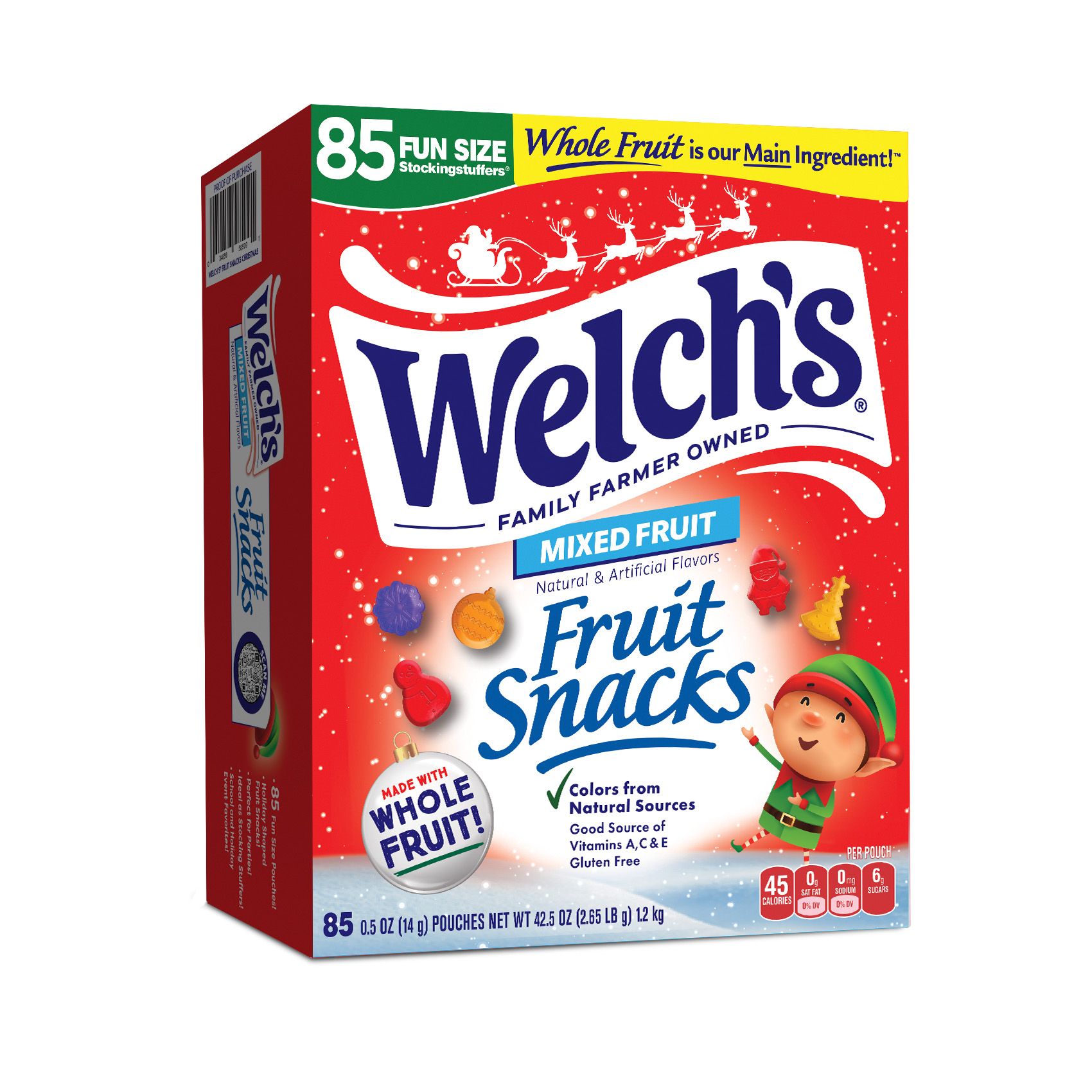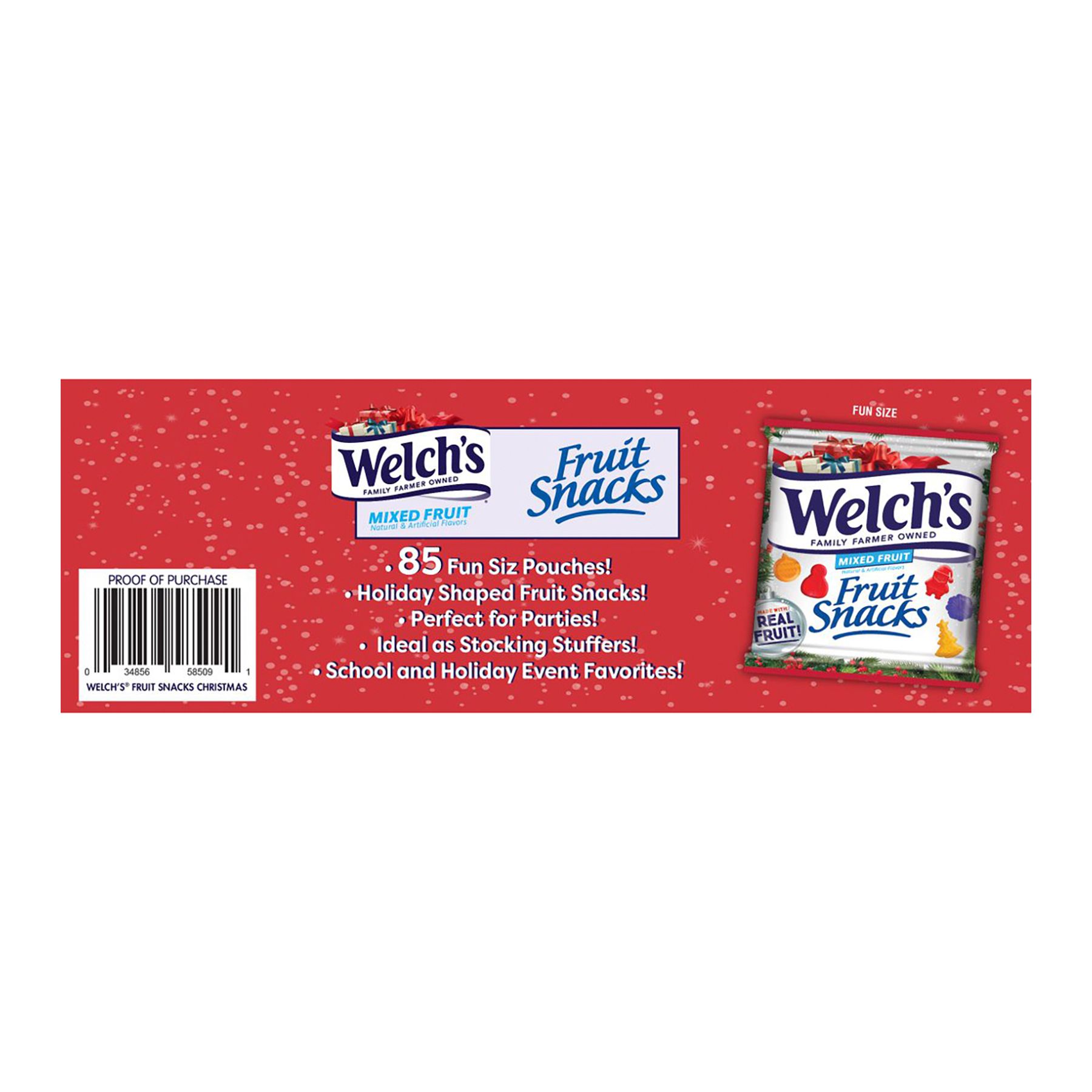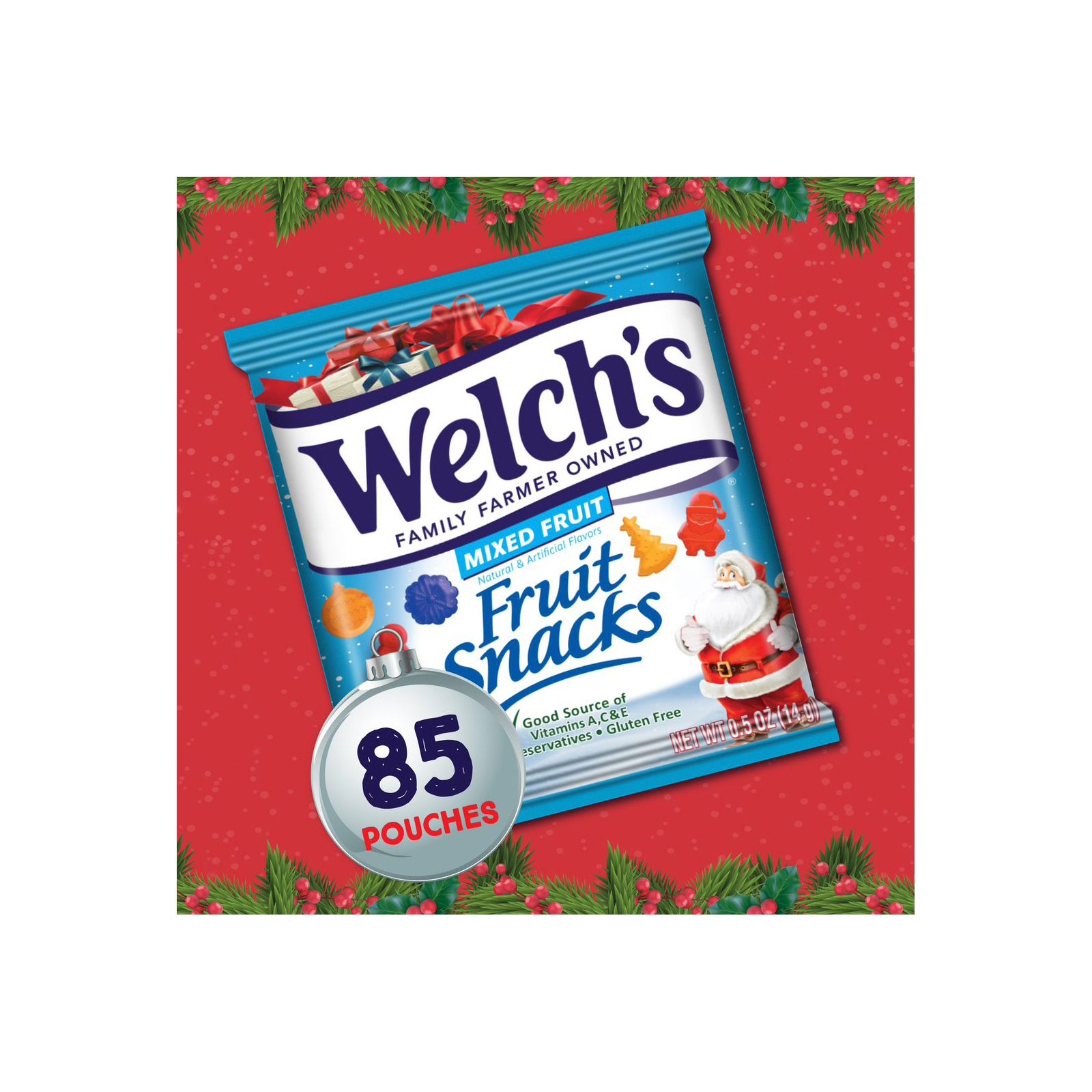 Includes holiday fruit snack pouches, 85 ct.