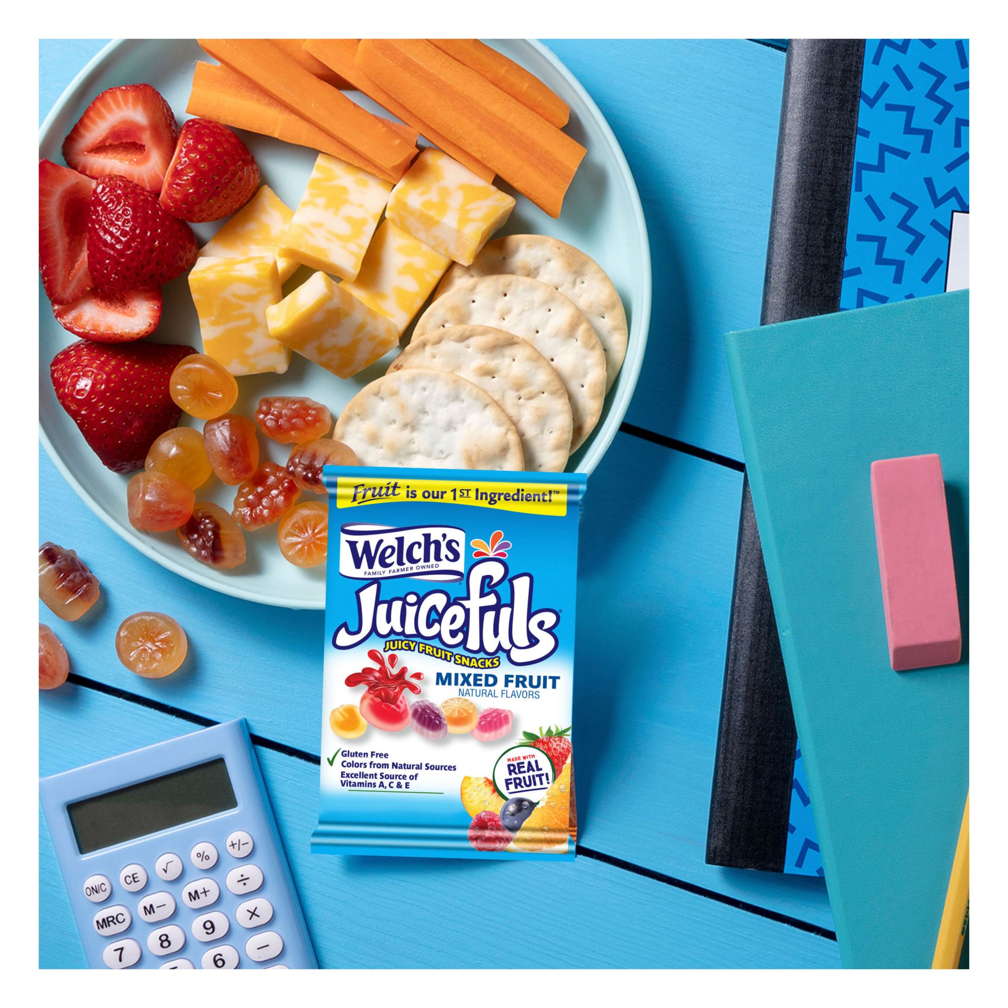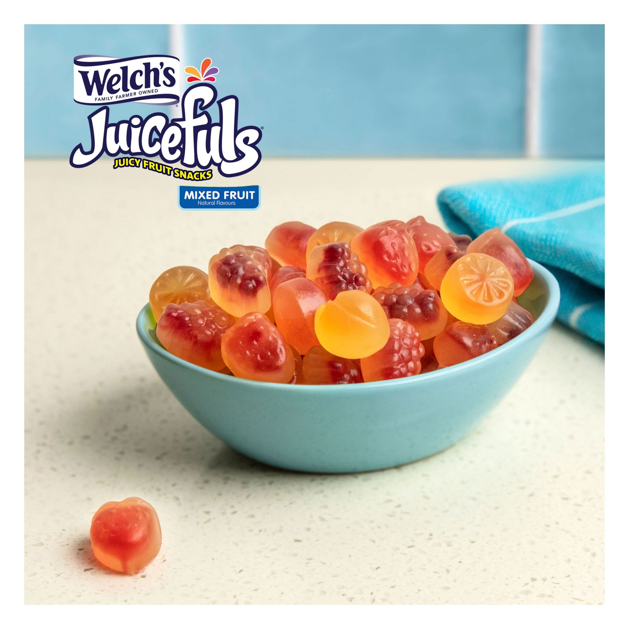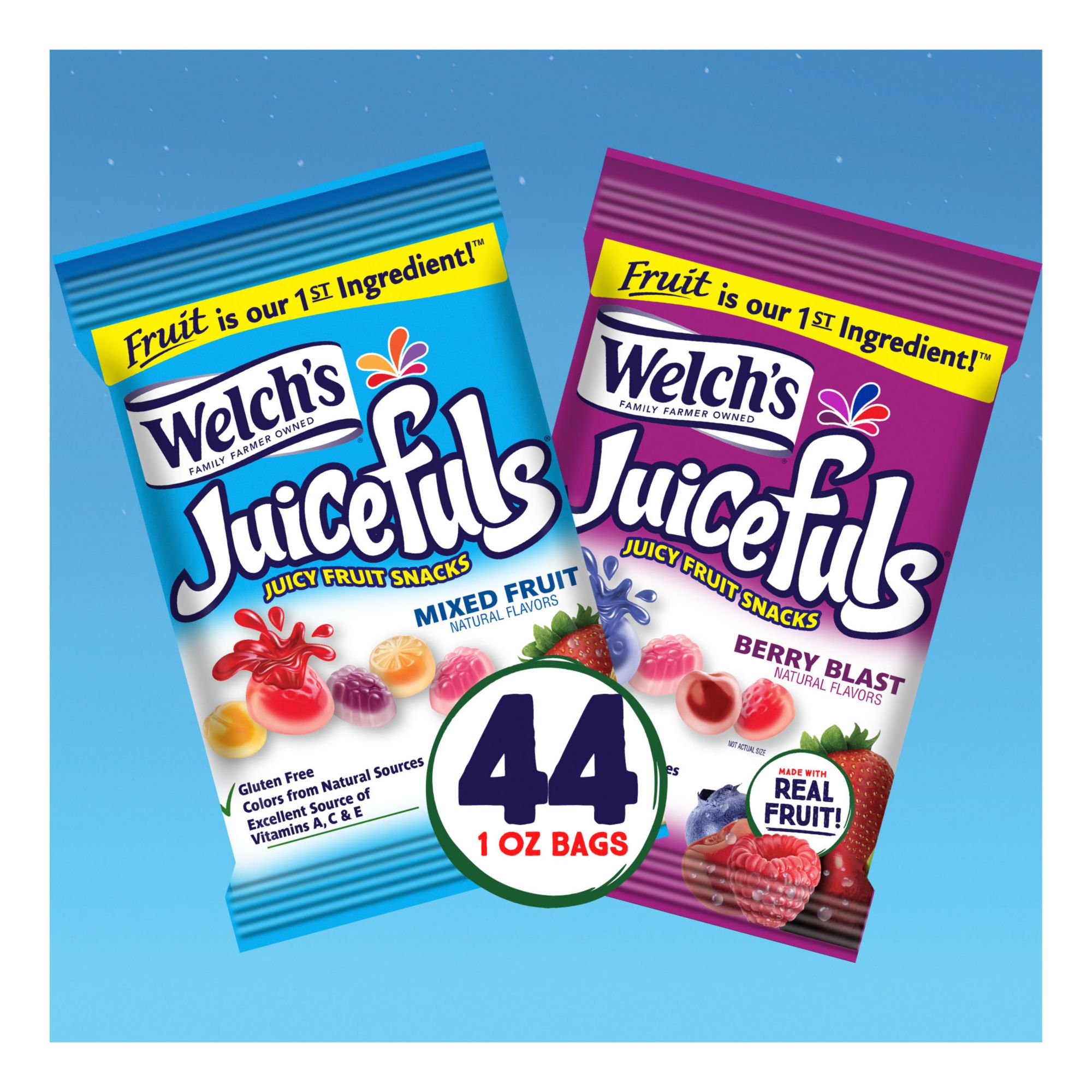 Contains 44 1oz pouches of Welch's Juicefuls Fruit Snacks. 22 Mixed Fruit, 22 Berries & Cherries.