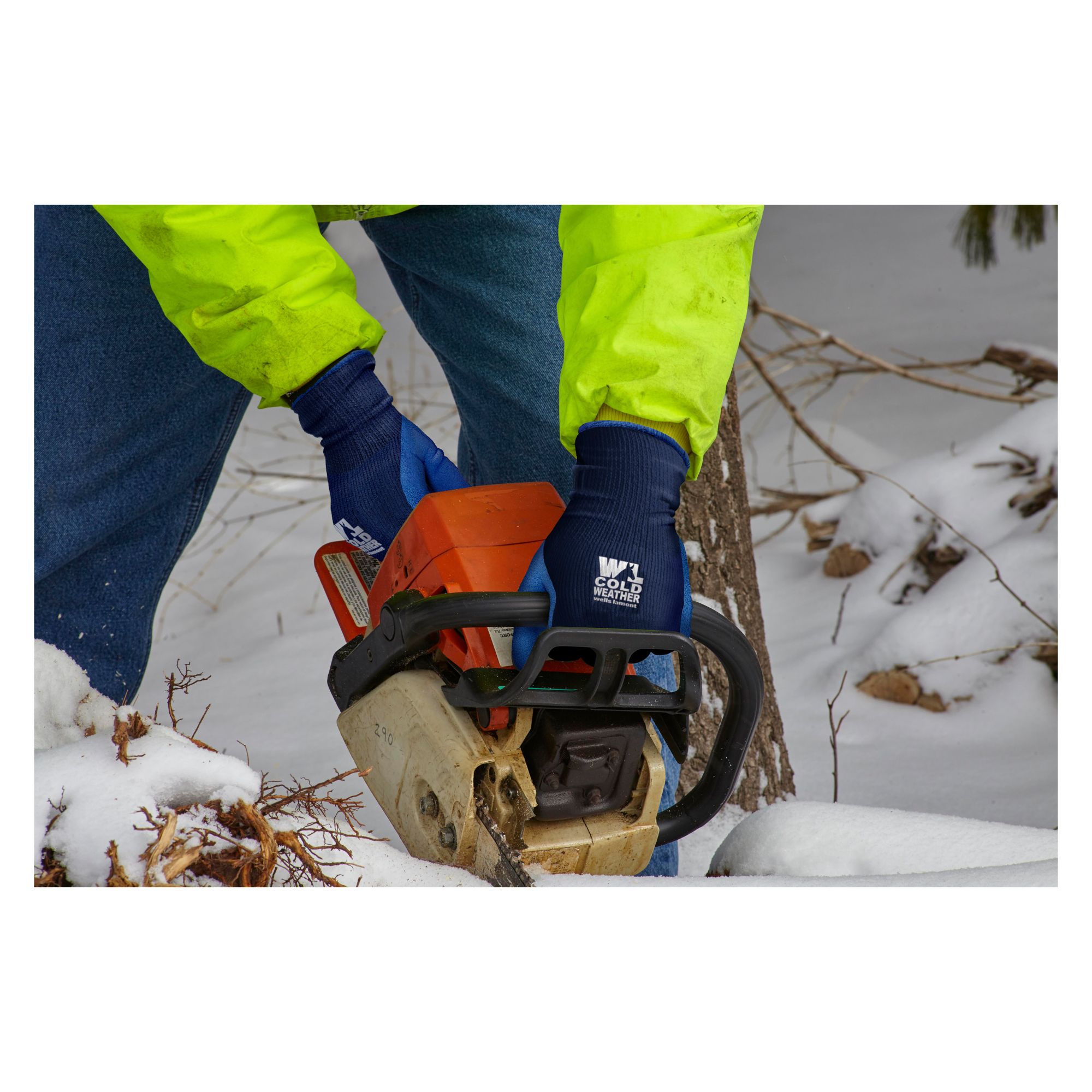 Wells Lamont Cold Weather Latex Coated Work Gloves is a heavyweight brushed terry knit shell in premium latex textured coating for extra grip and wear. Gloves are ideal for outdoor activities in cold weather. Good for yard work, landscaping projects, construction, remolding, job site clean up, and do-it-yourself projects. Made from a 100% nylon 15-gauge knit shell with a warm 7-guage 100% brushed hi-bulk acrylic liner.