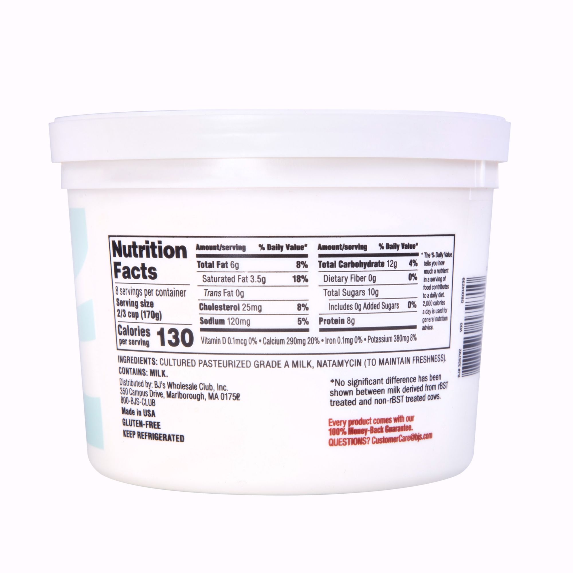 Ingredients: Cultured Pasteurized Grade A Milk, Natamycin (To Maintain Freshness).