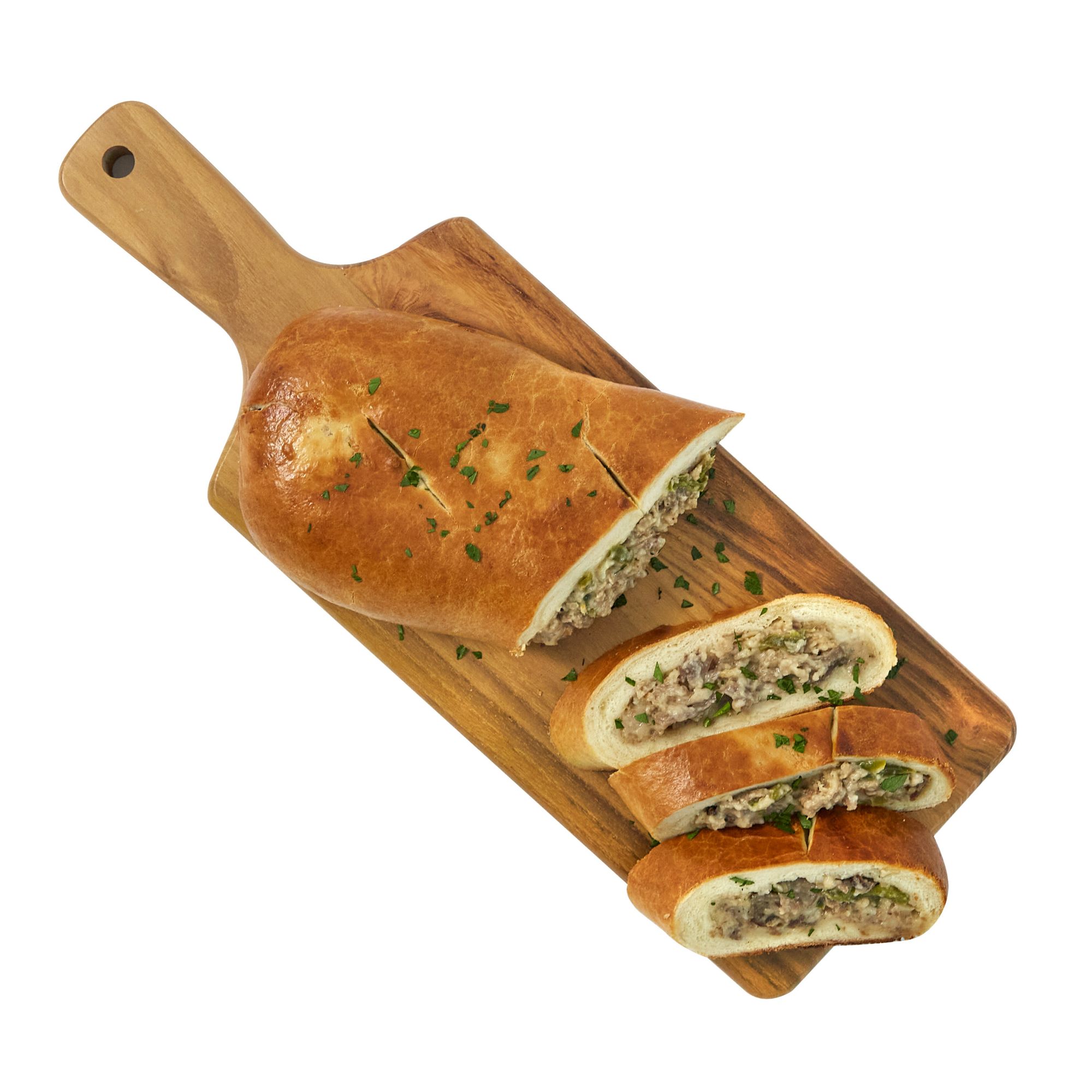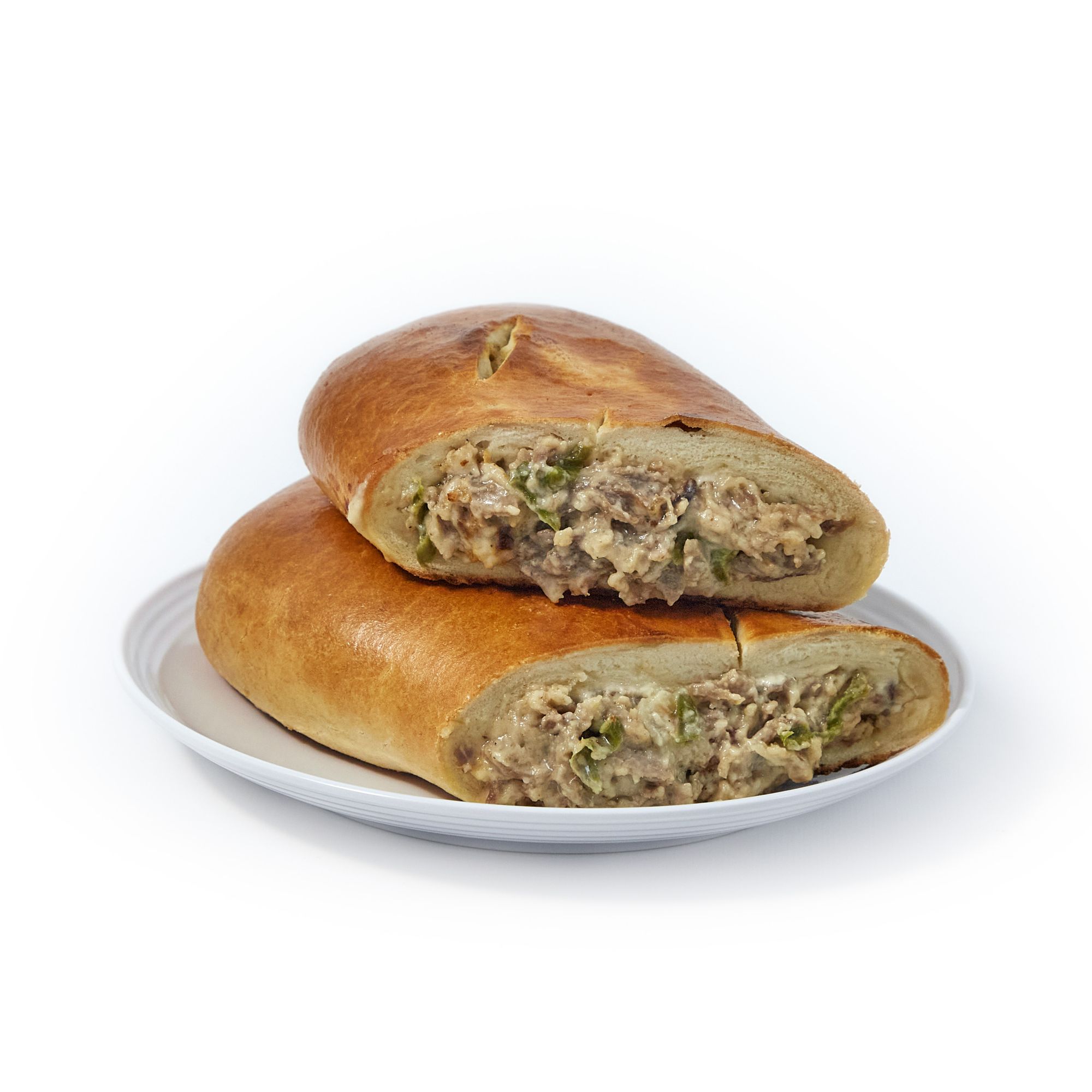Ingredients: Enriched Wheat Flour ([Wheat Flour, Niacin, Reduced Iron, Thiamine Mononitrate, Riboflavin, Folic Acid] Malted Barley Flour), Thin Sliced Beef Steak (Beef Contains Up To 15% Solution Of: Water, Seasoning [Corn Starch, Dextrose, Hydrolyzed Corn Protein {Contains Salt}], Sodium Lactate, Sodium Phosphate Yeast Extract, Natural Flavor), Water, Pasteurized White American Cheese) Skim Milk, American Cheese [Milk, Cheese Cultures, Salt, Enzymes], Palm Oil, Casein, Modified Food Starch, Sodium Citrate, Contains 2% Or Less Of: Salt, Natural Flavor, Whey Citric Acid, Sorbic Acid [Preservative], Artificial Color, Anti Caking Blend [Corn Starch, Potato Starch Cellulose, Dextrose, Glucose Oxidase]), Breadcrumbs (Enriched Flour [Wheat Flour, Malted Barley Flour, Niacin, Reduced Iron, Thiamin Mononitrate, Riboflavin, Thiamin Mononitrate, Riboflavin, Folic Acid] Sugar, Salt, Yeast, Ascorbic Acid [Vitamin C, added As Dough Conditioner]), Green Pepper & Onion Blend Heavy Cream, Milk, Olive-pomace Oil, Sugar, Salt, Yeast (Bakers Yeast, Sorbitan Monostearate, Ascorbic Acid), Food Starch-modified, Garlic, Dough Conditioner(enriched Wheat Flour[niacin,reduced Iron Thiamine Mononitrate,riboflavin,folic Acid], Enzymes), Black Pepper, Yeast, Calcium Propionate, Dough Conditioner (Calcium Sulfate, Enzymes, Corn Starch Sodium Bicarbonate, Dicalcium Phosphate, Microcrystalline, Cellulose, Monocalcium Phosphate, Modified Starch, Calcium Stearate).