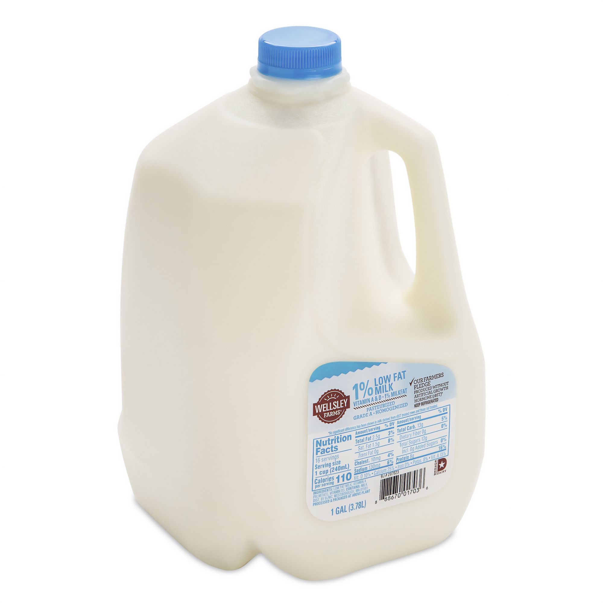 Always have enough milk on hand with this carton of Wellsley Farms 1 Gal. 1% Low-Fat Milk. It offers a low-fat alternative to whole milk varieties and comes fortified with Vitamins A and D for increased nutrition. Plus, it remains a great source of calcium, too.