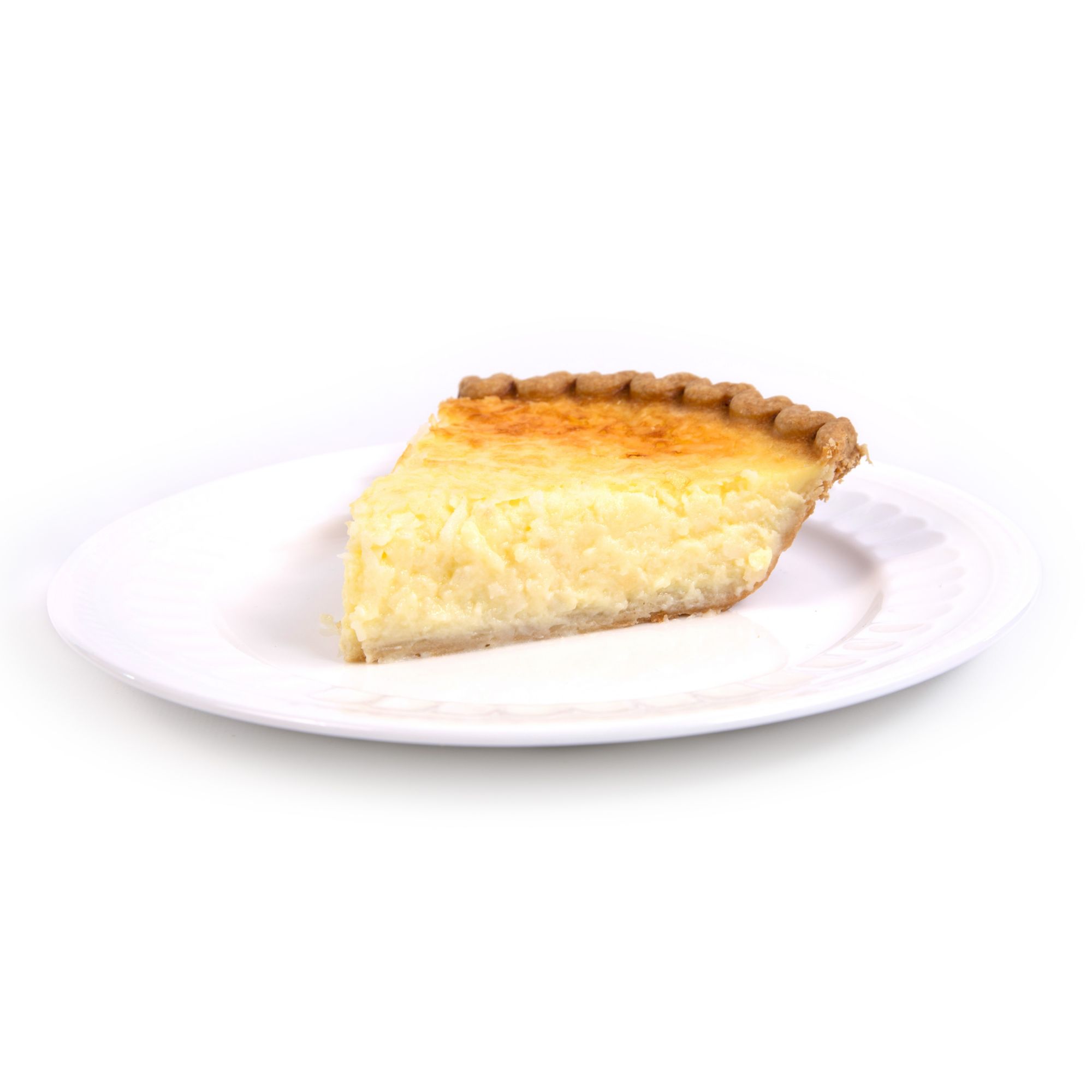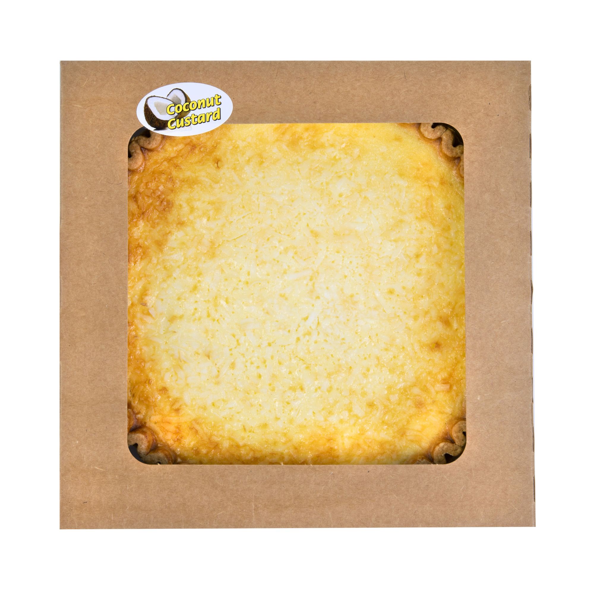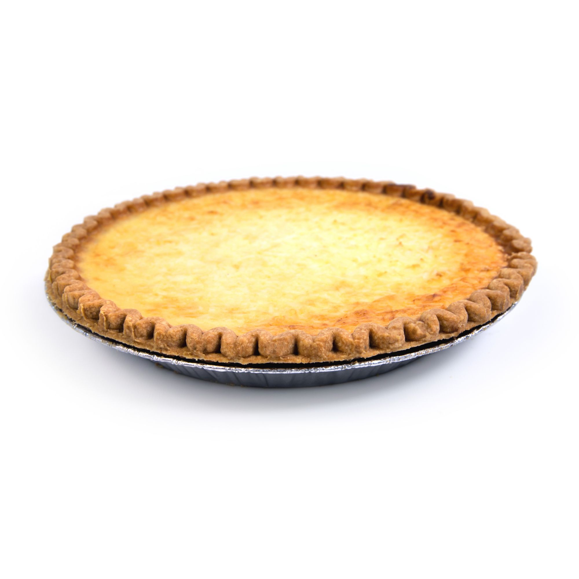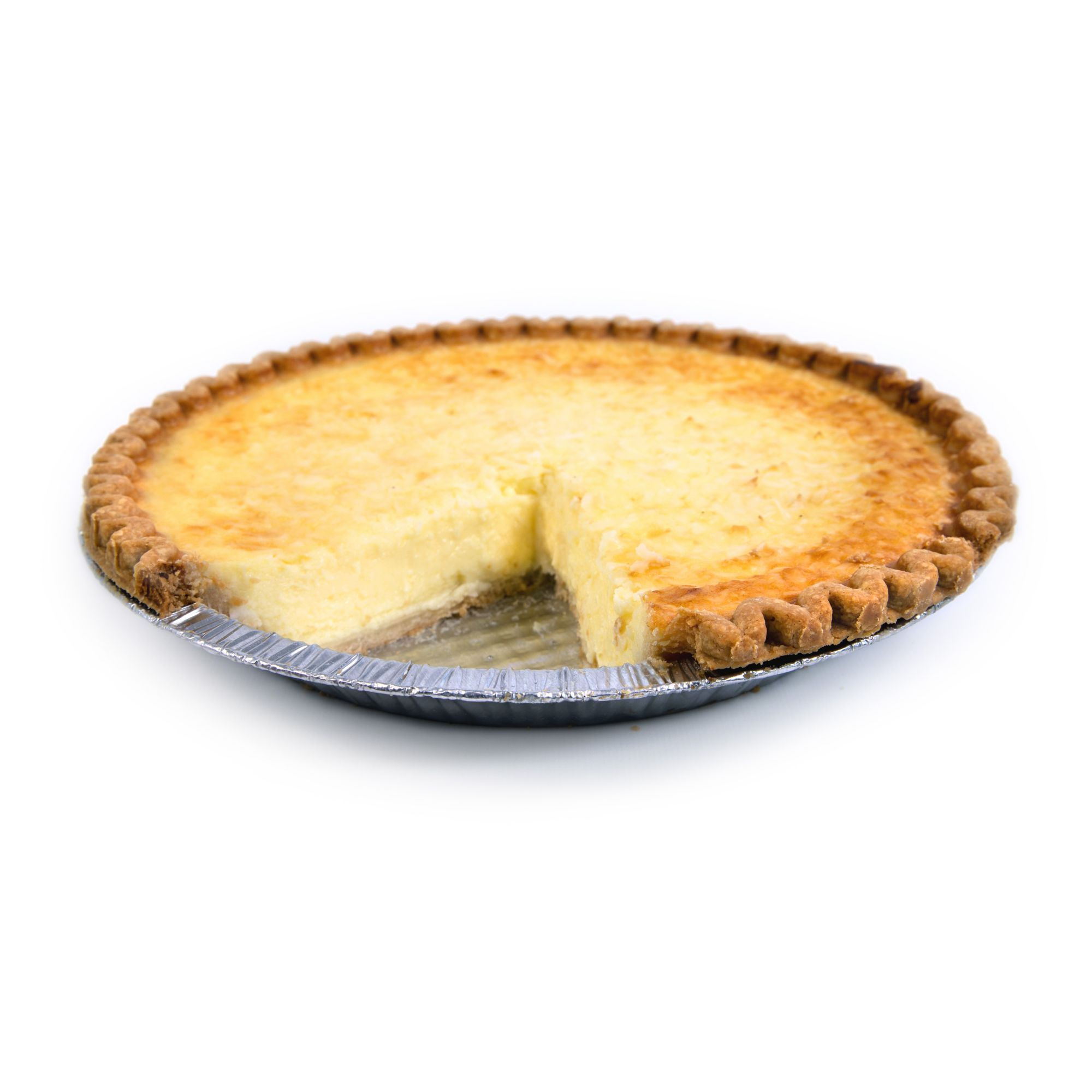 A coconut custard pie is a delectable dessert that combines the creamy richness of custard with the tropical flavor of coconut. This 10" Coconut custard pie is sure to please all of your family and friends and serves nine people. Coconut Custard is a twist on a traditional custard pie- bringing the same egg flavor with the sweetness of the coconut baked in - sure to please anyone with a sweet tooth.