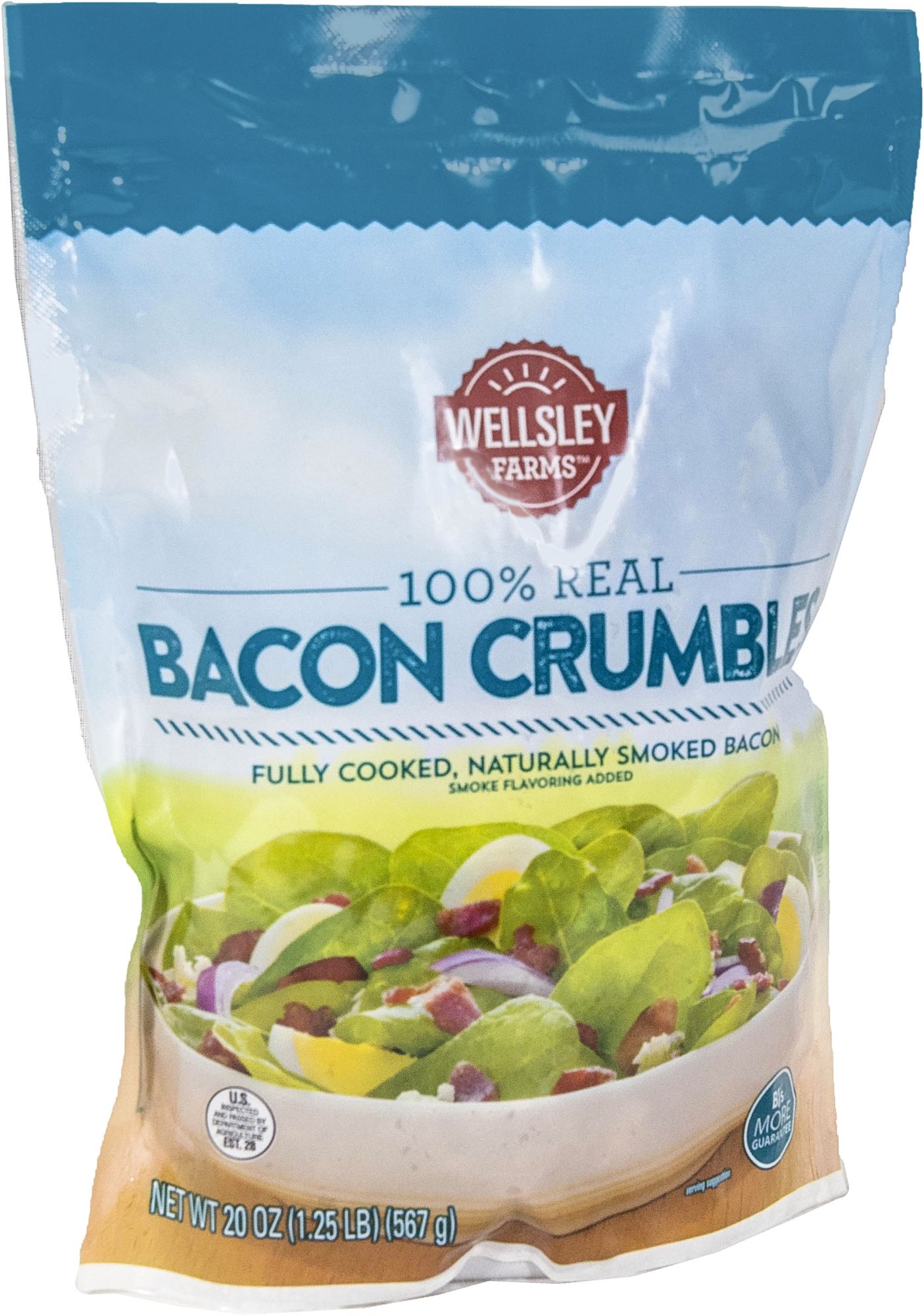 Delight in the fun and delicious flavor of Wellsley Farms Real Bacon Crumbles. Naturally smoked and made from 100% real bacon, add these scrumptious morsels to your favorite soups, salads, sandwiches and more for tasty burst of bacon goodness.