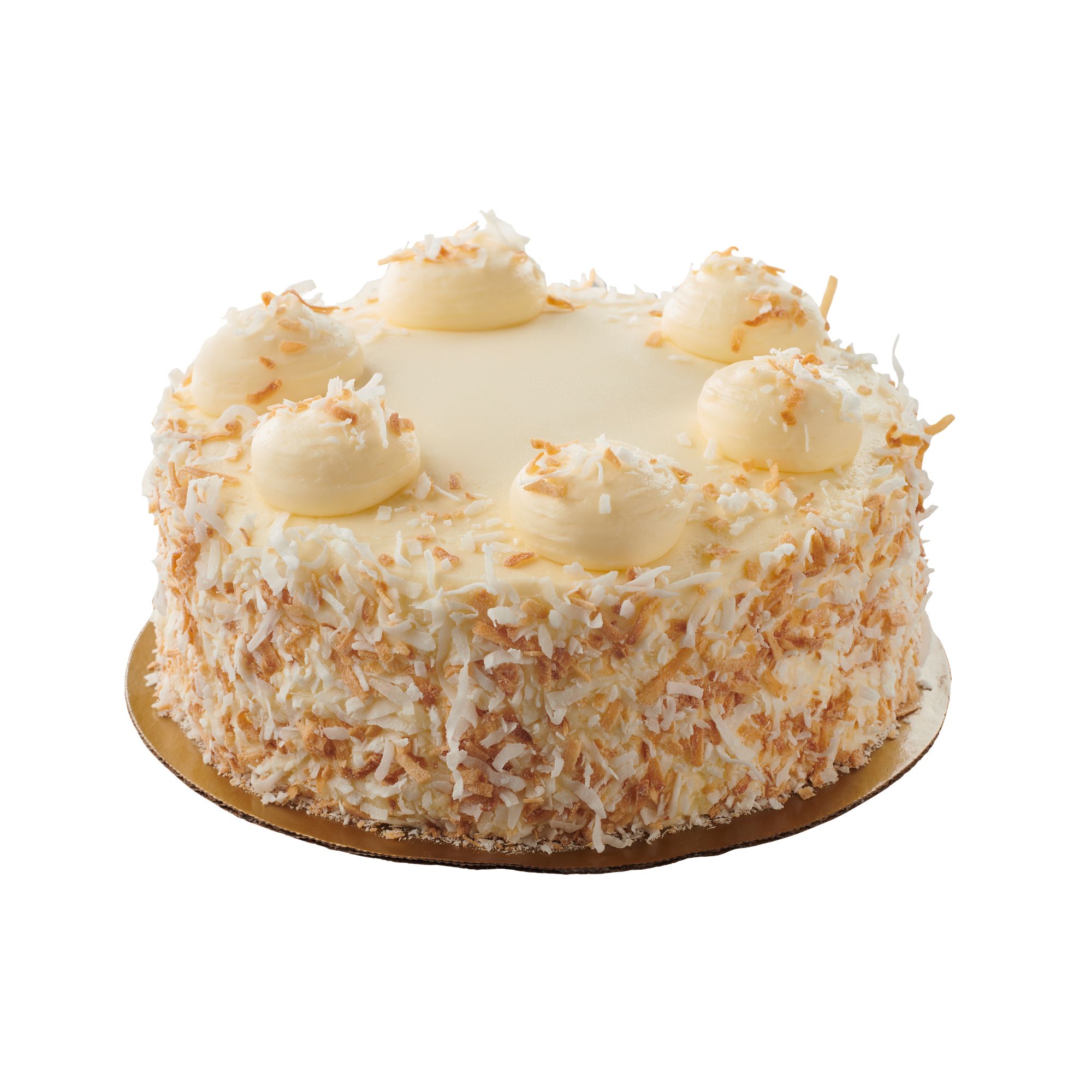 Wellsley Farms 7" Italian Cream Cake has two moist layers of Italian creme cake. The cake is filled and iced with creamy cream cheese icing, and garnished with a mixture of sweet and toasted coconut flakes.