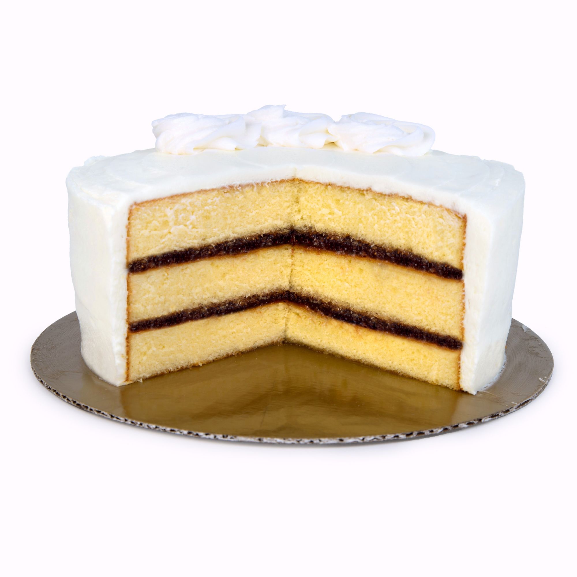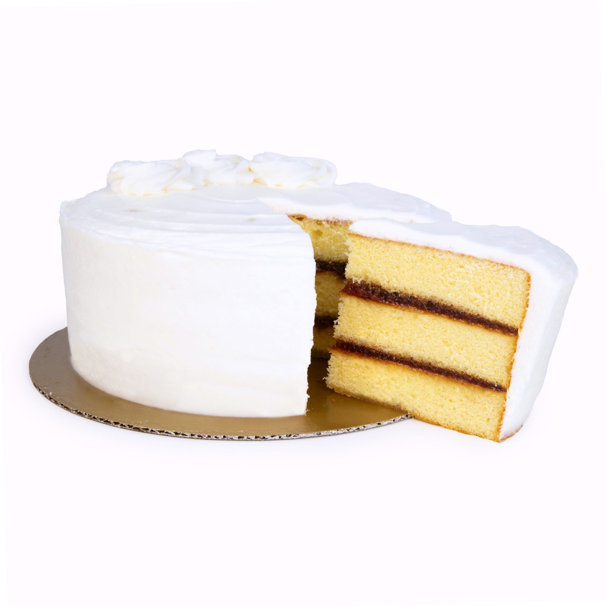 Wellsley Farms 7" Triple Layer Chantilly Cake has three layers white cake filled with strawberries, and frosted with chantilly cream. This cake serves up to 12 people.