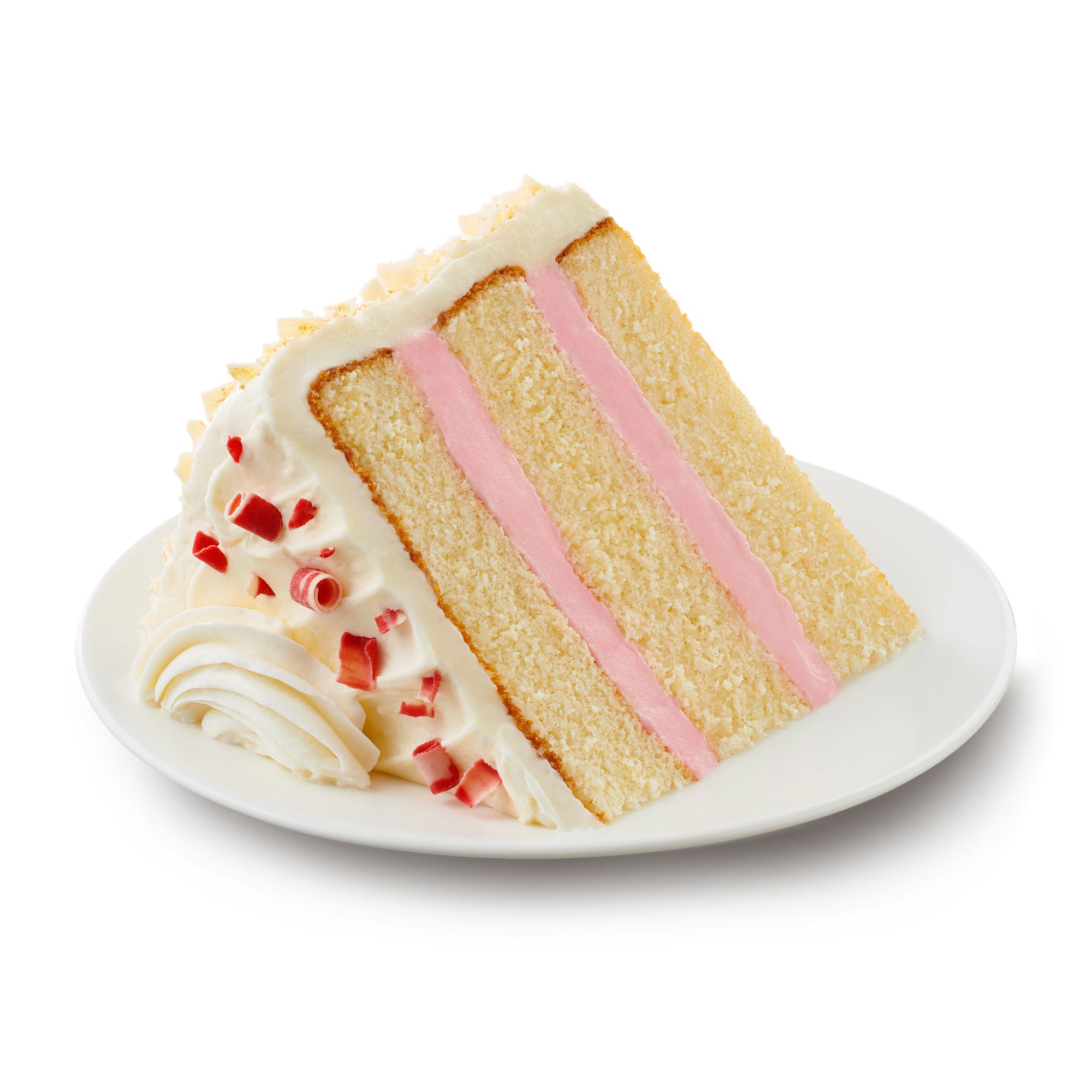 Includes triple-layer raspberry cream cheese cake, 8"