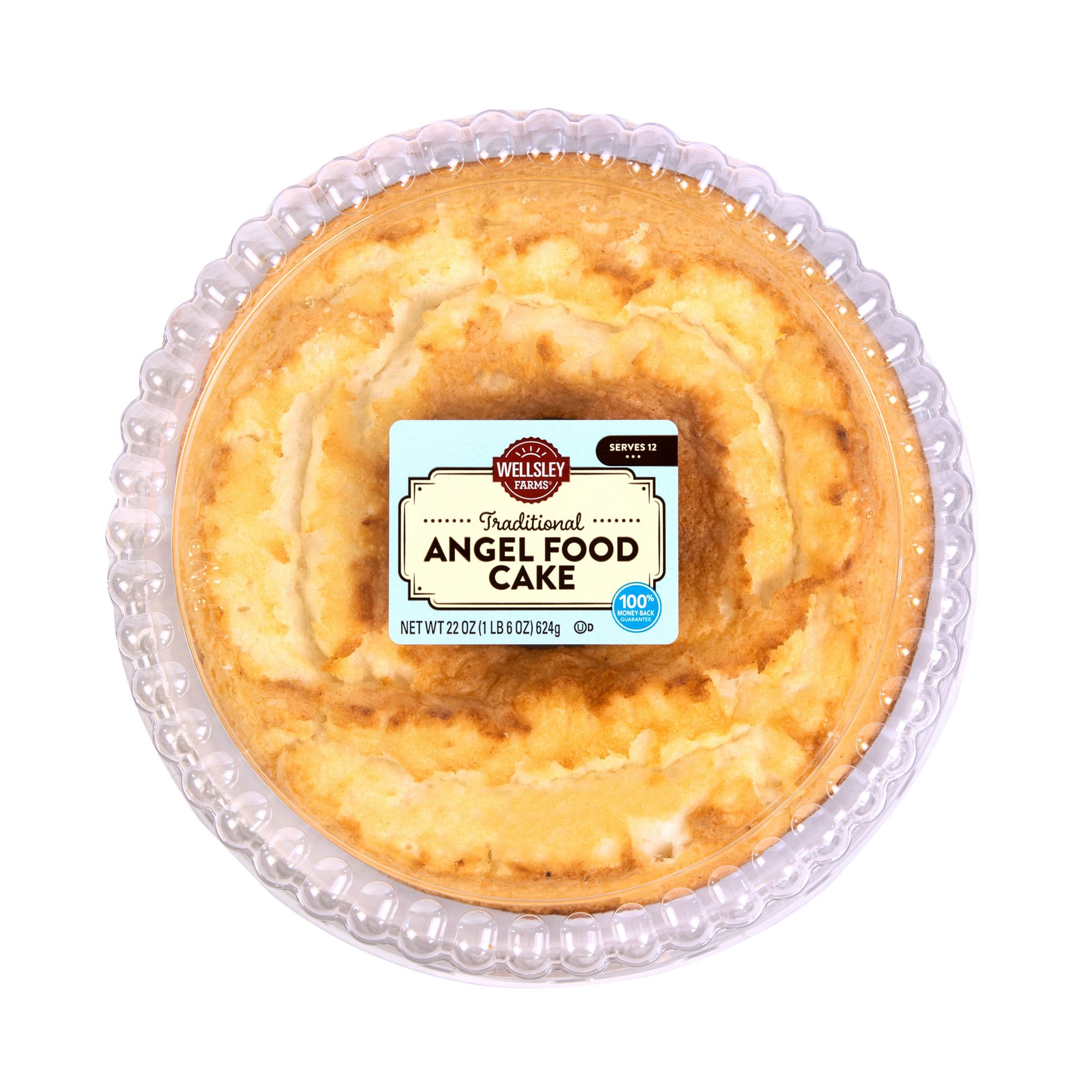 Wellsley Farms Angel Food Cake is a traditional top-side-up and out-of-the-pan angel food cake. Serve as is or add your favorite fruit or topping for the perfect snack or dessert.