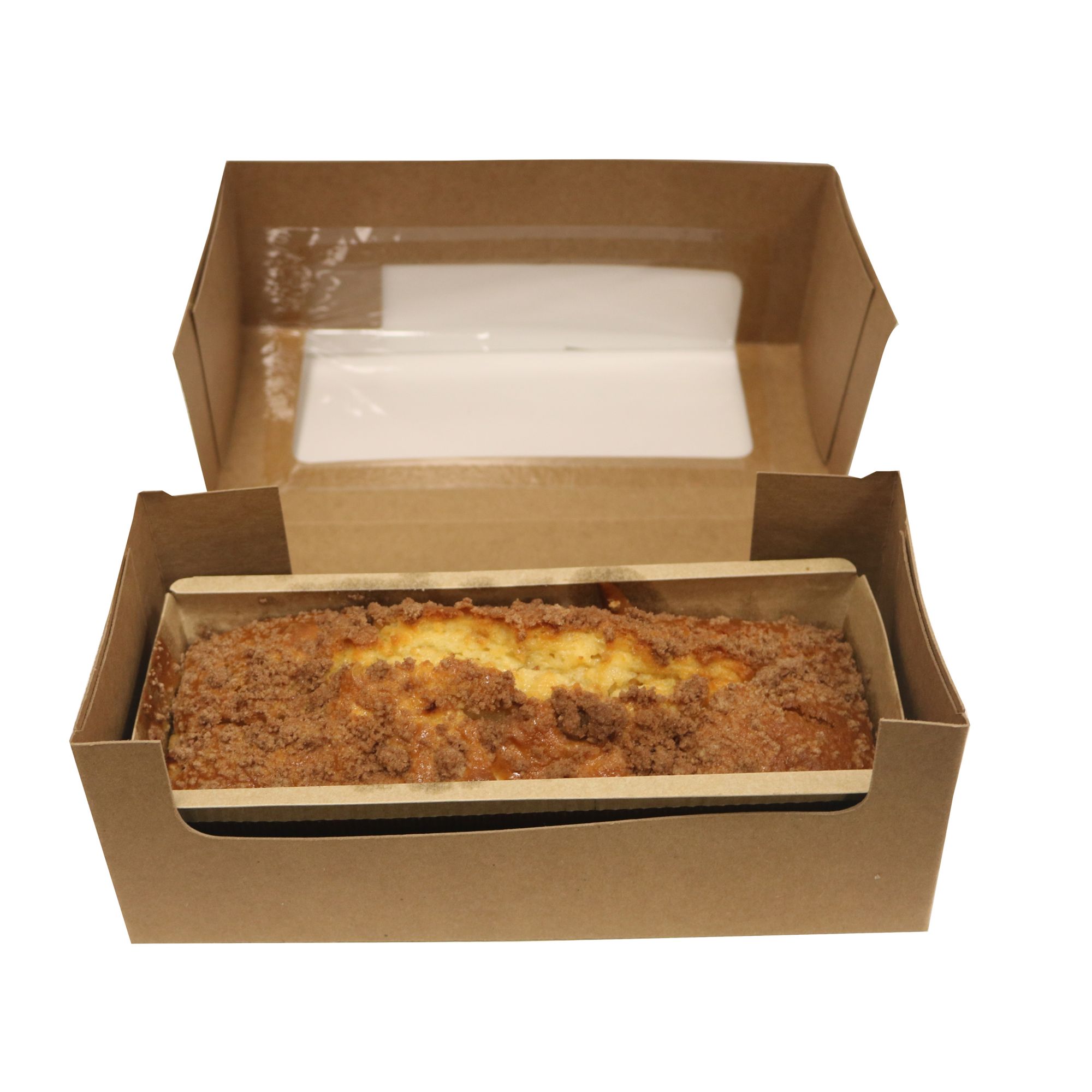This simply delicious and delectably moist loaf cake features the delightful combination of apple and caramel flavors. The Apple Caramel Loaf Cake is filled with real diced apple pieces and paired with caramel flavored streusel bits through the large loaf cake. Baked is an upscale loaf cake liner and perfect for family breakfast, snack or fall gift. Caramel Apple Loaf cake is a limited time offering during the fall season.