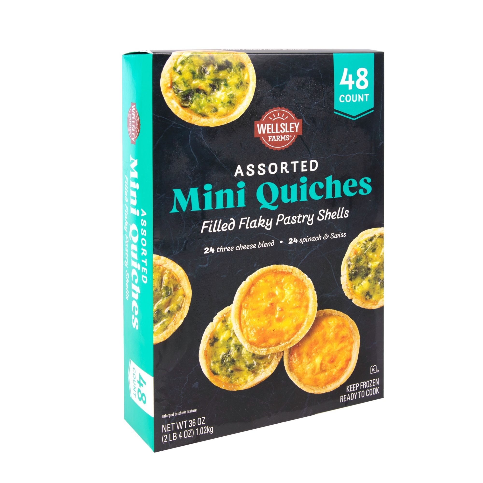 Wellsley Farms Assorted Mini Quiche - Spinach & Swiss, Three-Cheese, 48 ct.