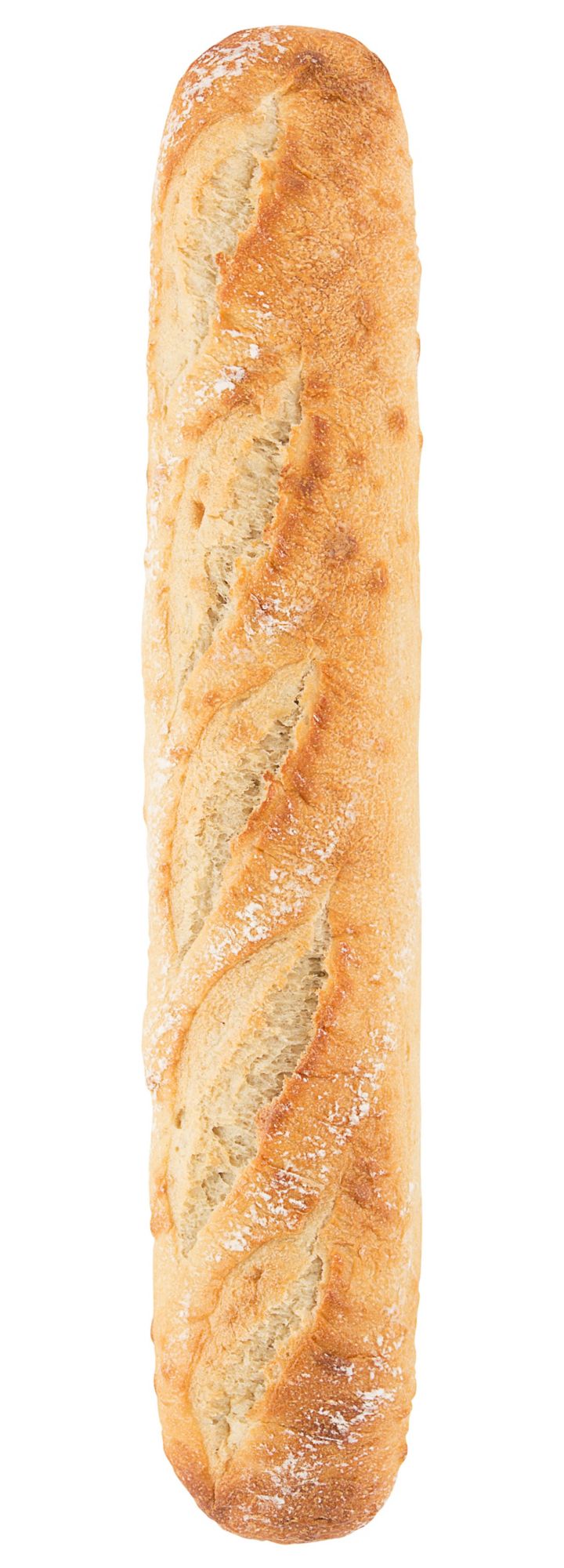 Characterized by its rounded tip, this baguette features a crispy crust and a light, porous interior matched with the silky-smooth aroma of natural levain. Serve warm with olive oil, fresh spreads or your seasonal favorites.