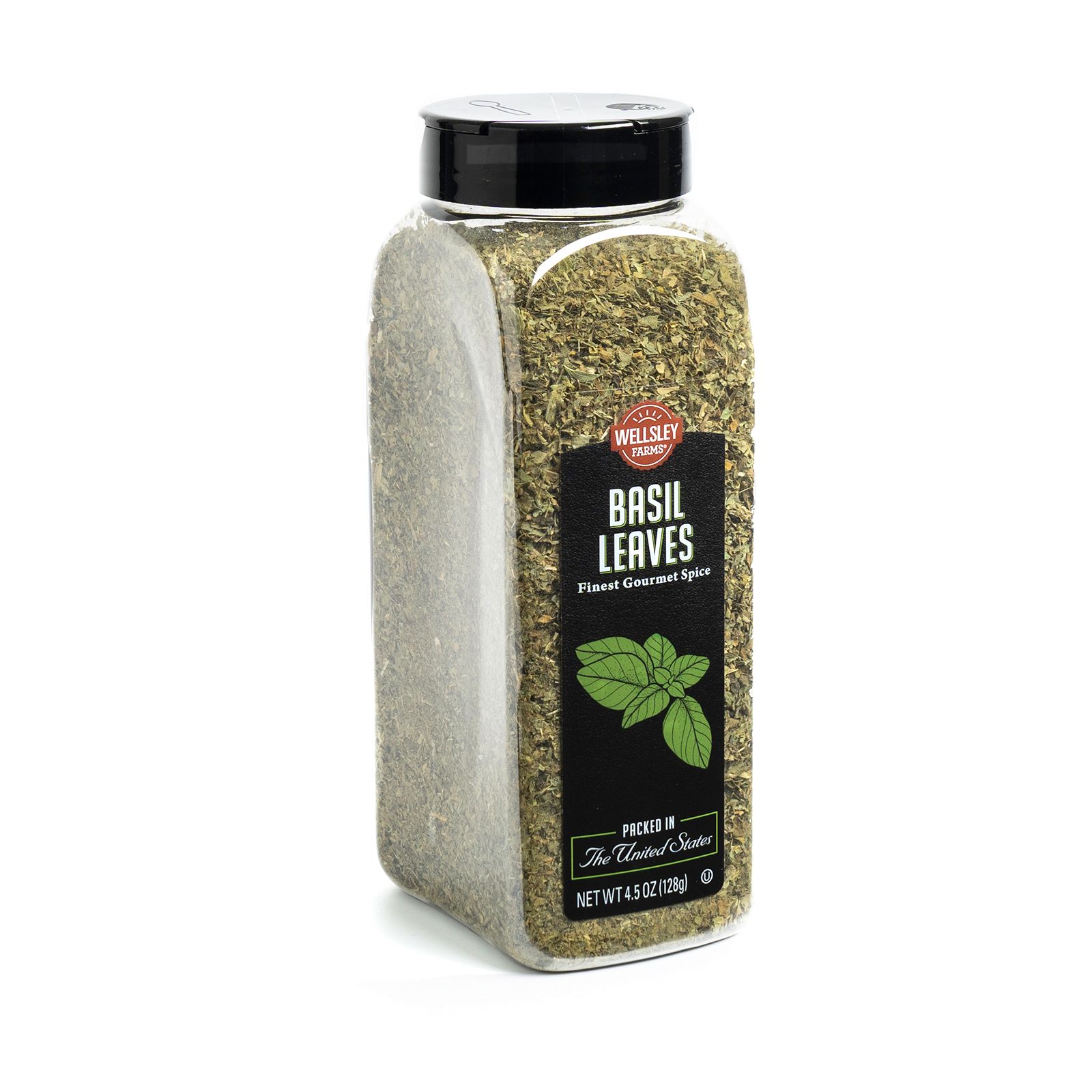 Wellsley Farms Basil Leaves are gently dried with a rich deep green color. They have a sweet aroma and warm, slightly pungent flavor. Basil leaves are great for adding flavor to salads and sandwiches.