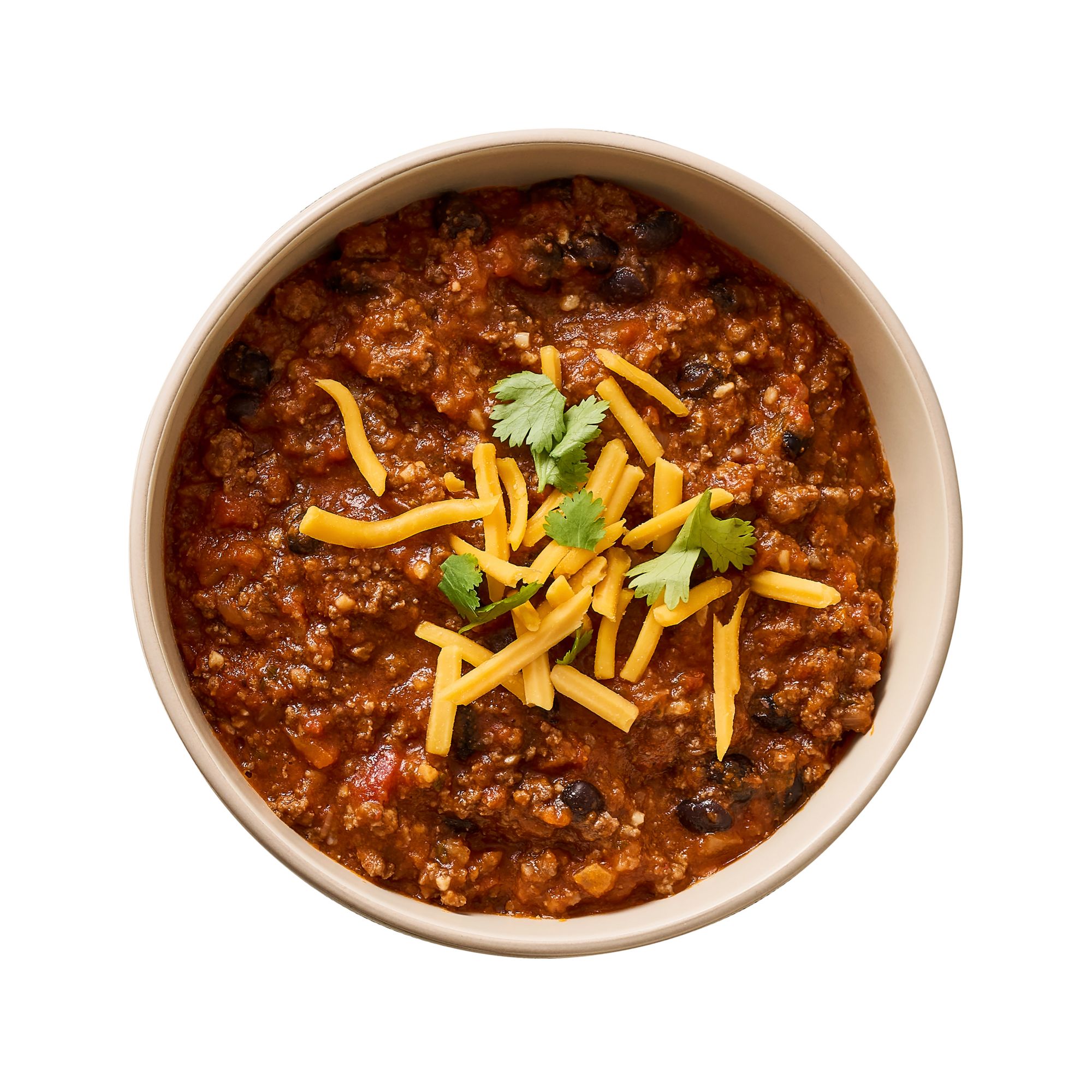 Ingredients: Beef Chili: Italian Style Sauce (Tomatoes, Tomato Paste, Onion, Salt, Olive Oil, Garlic, Citric Acid, Black Pepper, Bay Leaf, Basil), Ground Beef, Black Beans, Onions, Garlic, Tomato Paste (Vine-ripened Fresh Tomatoes, Naturally Derived Citric Acid), Salt, Chili Powder (Chili Peppers, Spices, Salt, Garlic Powder, Silicon Dioxide [Anti-caking]), Oregano. Shredded Colored Cheddar Cheese: Pasteurized Milk, Cheese Cultures, Salt, Enzymes, Annatto (Color), Powdered Cellulose (To Prevent Caking). Microwave: Place Product In A Microwave Safe Bowl. Heat For 2 Minutes At A Time Until Internal Temperature Reaches 165 Degrees F. Stovetop: Pour Product Into A Pan. Heat Product On Stovetop, While Stirring Until Internal Temperature Reaches 165 Degrees F.