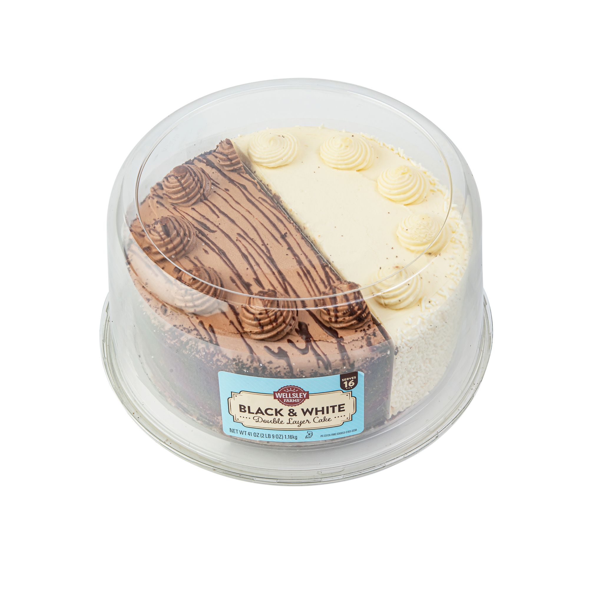 Includes black and white decorated cake, 41 oz.