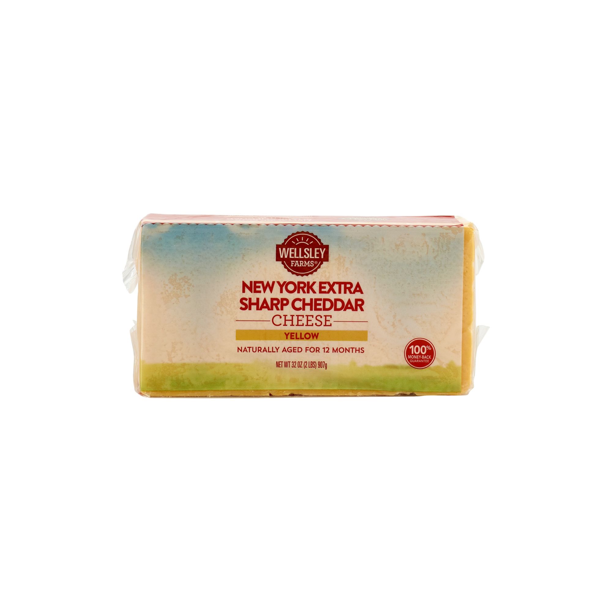 Wellsley Farms New York Extra-Sharp Yellow Cheddar Cheese is all natural, great tasting and made in the USA. This large block of cheese has a variety of uses, from snacking to melting into your favorite cheesy recipes. The extra sharp flavor is produced from 12 months of natural aging.