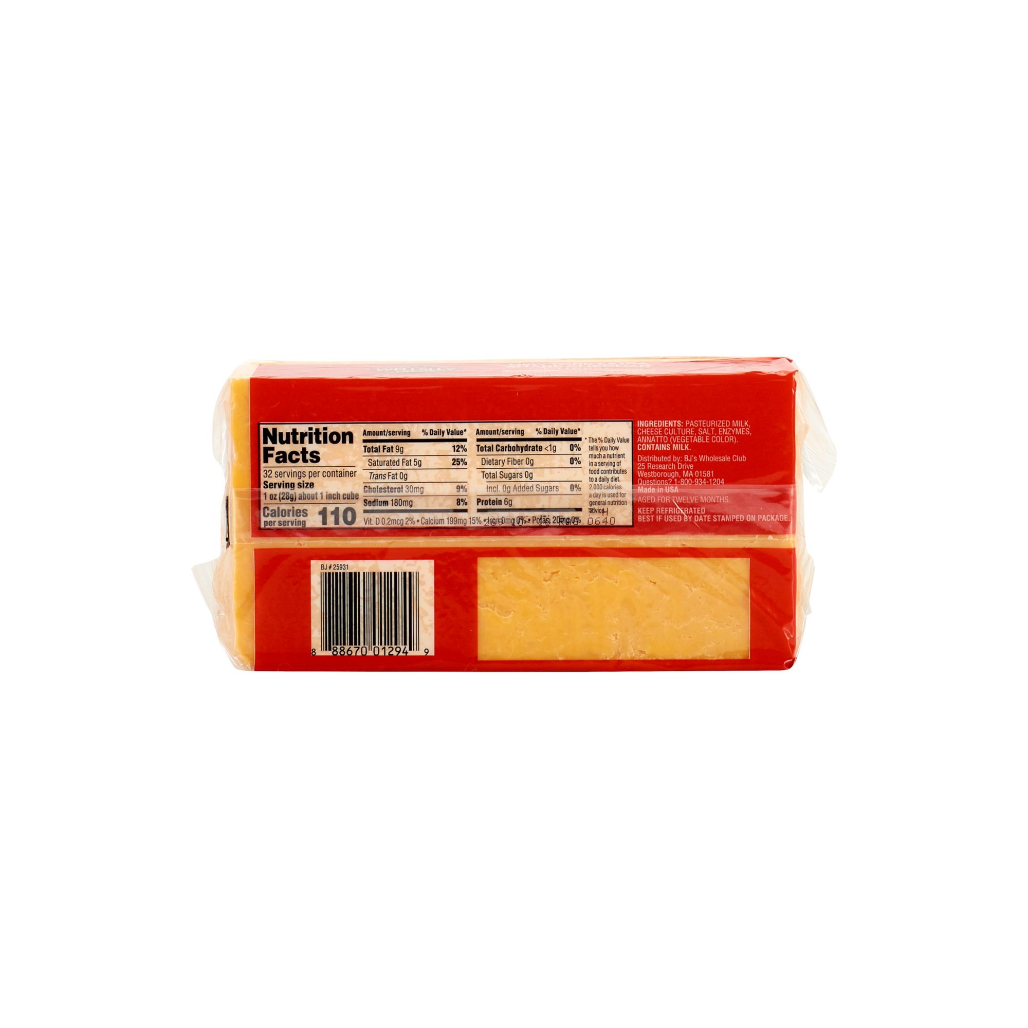 Ingredients: Pasteurized Milk, Cheese Cultures, Salt, Enzymes, Annatto (Vegetable Color).