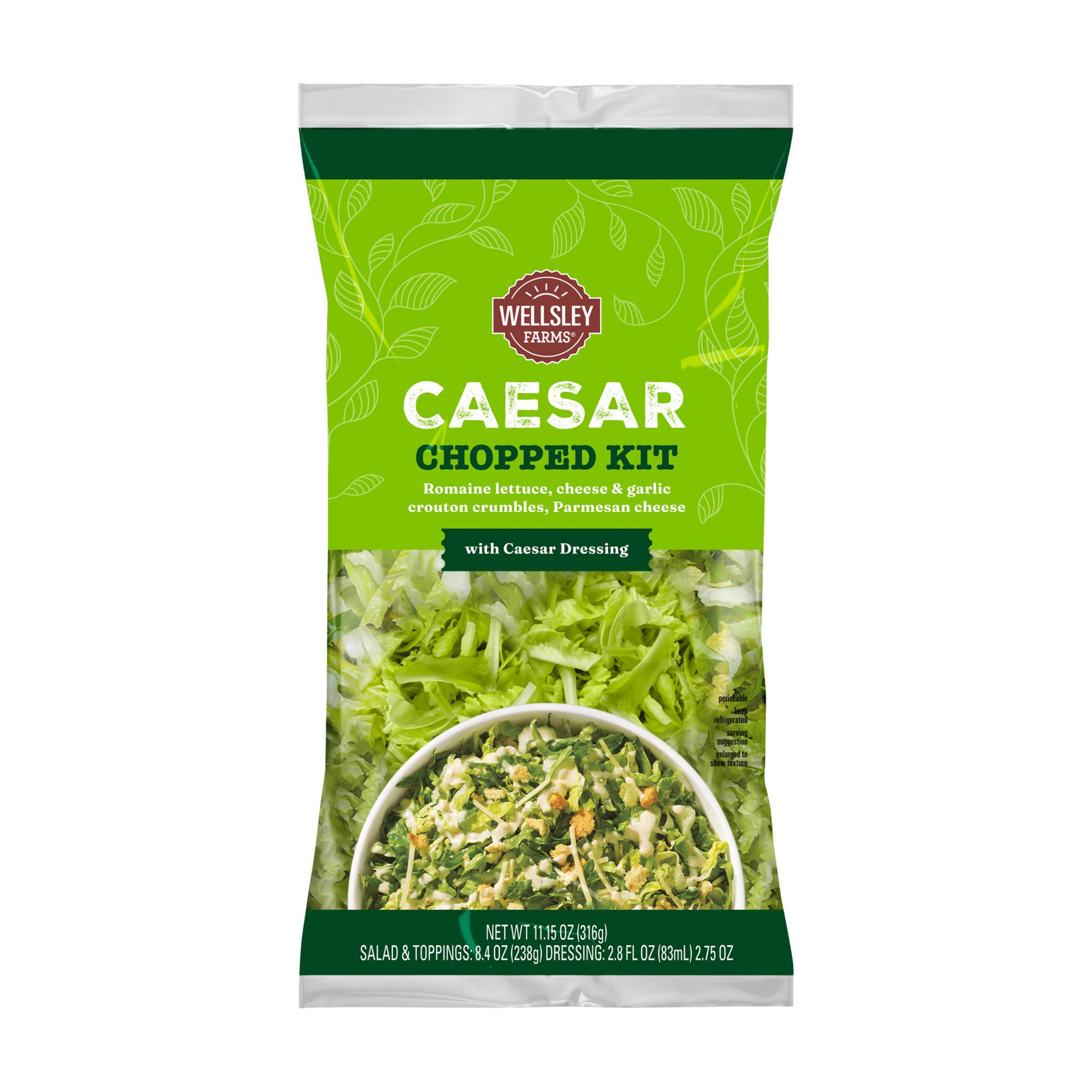 Nothing beats a classic! Caesar Chopped Salad Kit has everything you need: crispy romaine lettuce, shredded parmesan cheese, and crunchy garlic and cheese crouton crumbles - all ready to go, right out of the bag (with some assembly required)