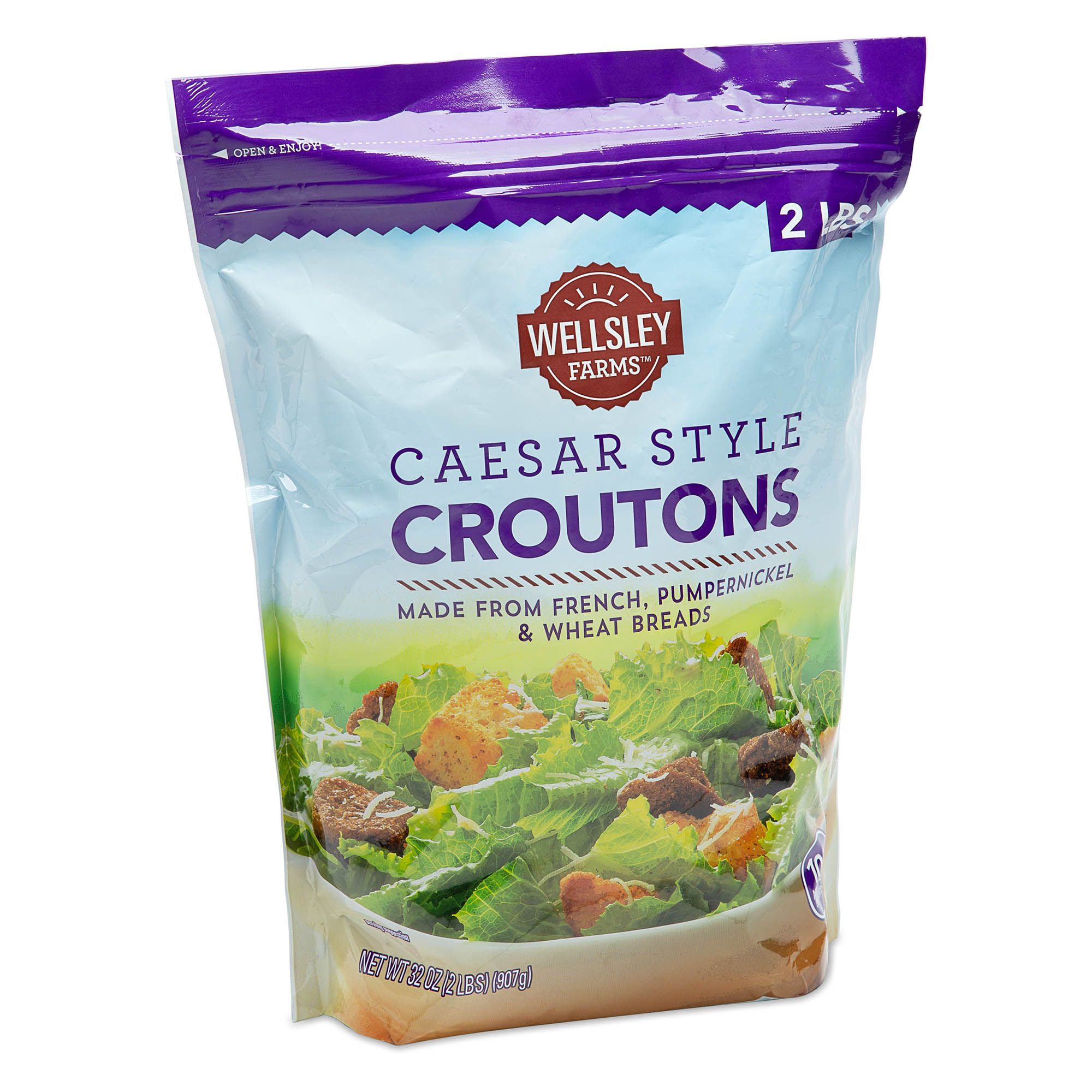 Made from French, pumpernickel and wheat breads and twice-baked to crunchy perfection, these croutons are the perfect addition to your favorite soups and salads. Toss the croutons in a Caesar salad for a simple and easy classic dish.
