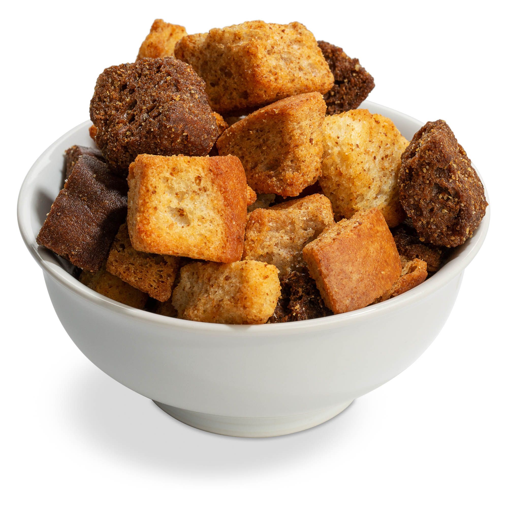 Made from French, pumpernickel and wheat breads Twice-baked Caesar style Natural cut Includes one 2-lb. bag