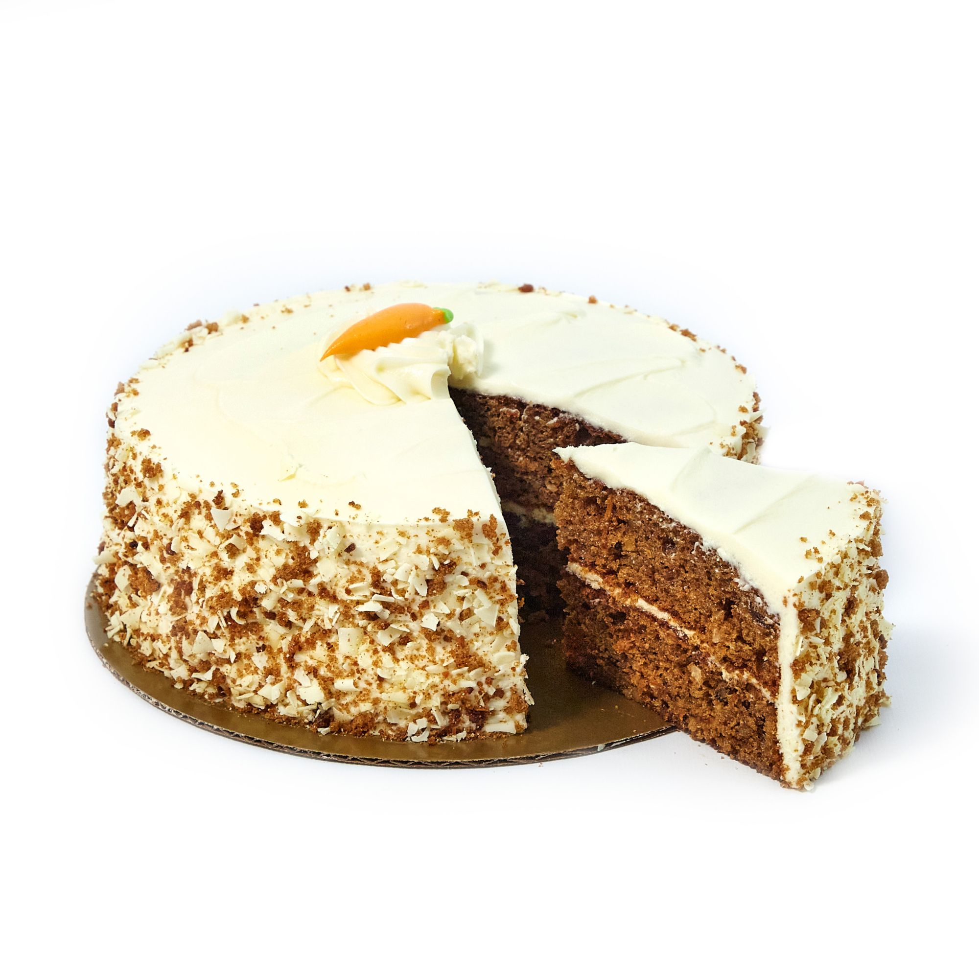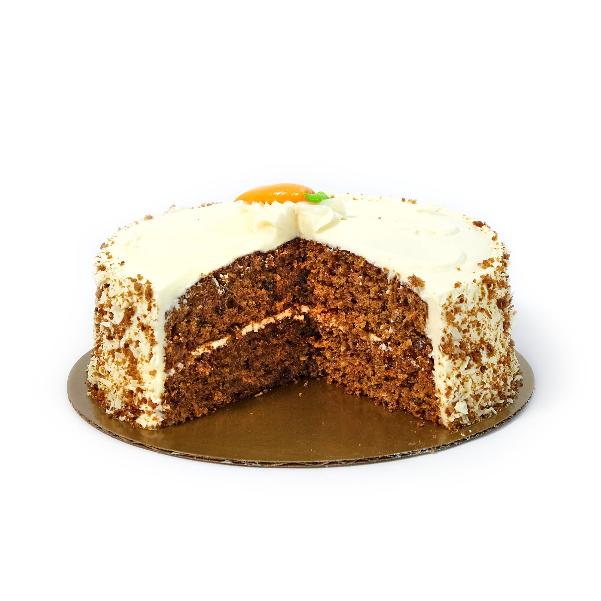 Carrot cake with cinnamon cream cheese icing, coconut and walnuts Artificially flavored Kosher certified Keep refrigerated Includes 50-oz. carrot cake