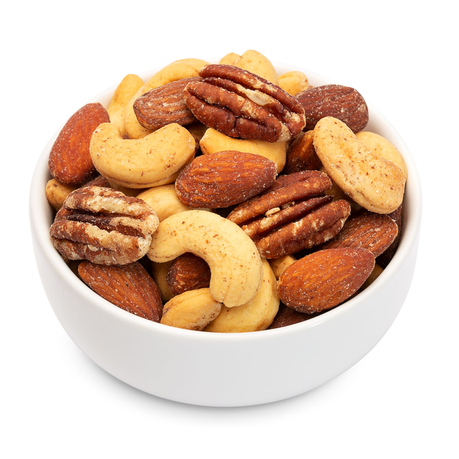 The Wellsley Farms Cashew Lovers Mix is made with high-quality nuts and is lightly roasted and salted with sea salt. This resealable canister contains a perfect mixture of almonds, pecans, and extra cashews to give you a slightly salty snack that will satisfy your taste buds with every handful.