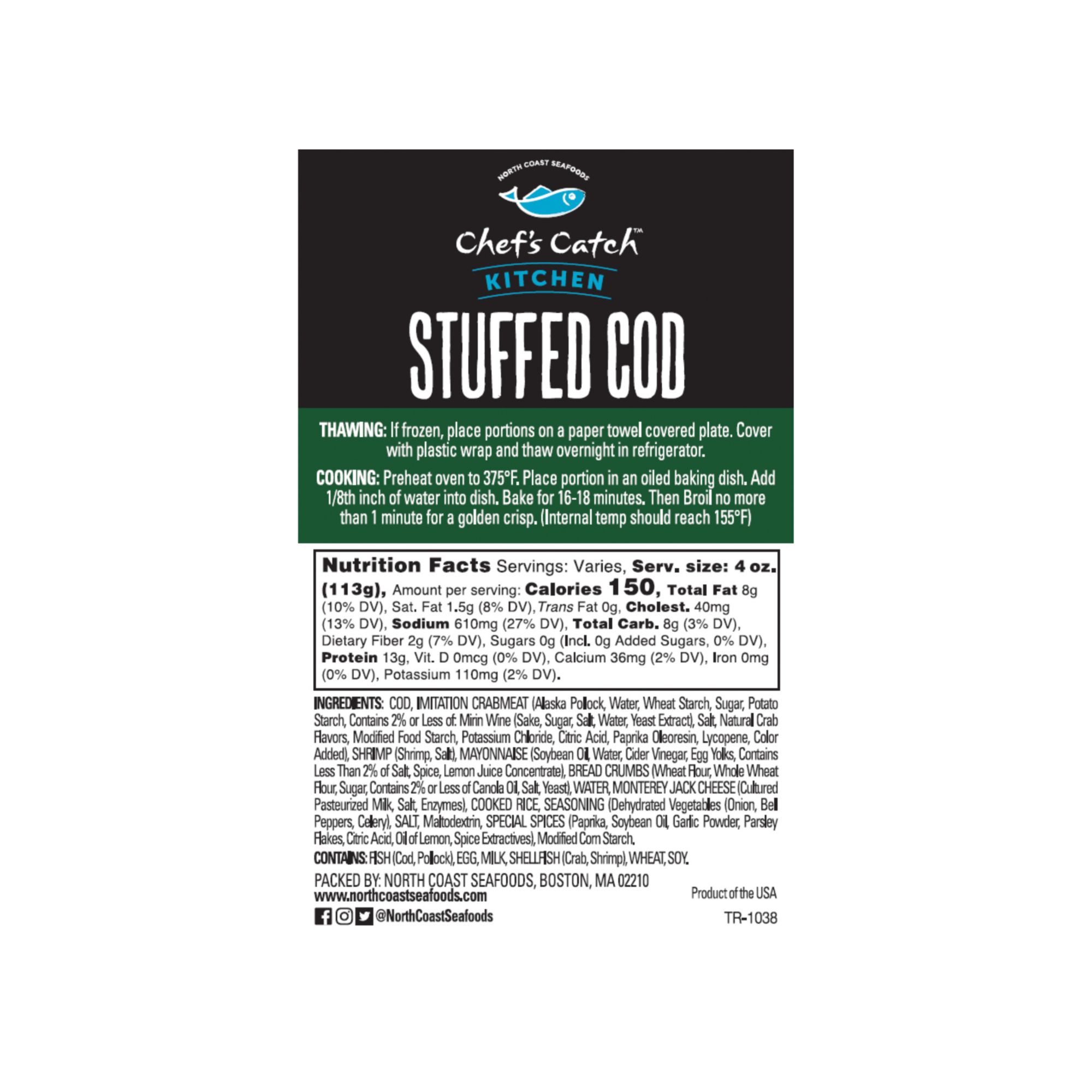 Chef's Catch Stuffed Cod are individually made using quality Alaskan cod and rolled with a signature stuffing. This item is easy to cook and is sure to please the whole family. Bake this item for a quick meal during the week, or as a date night item!