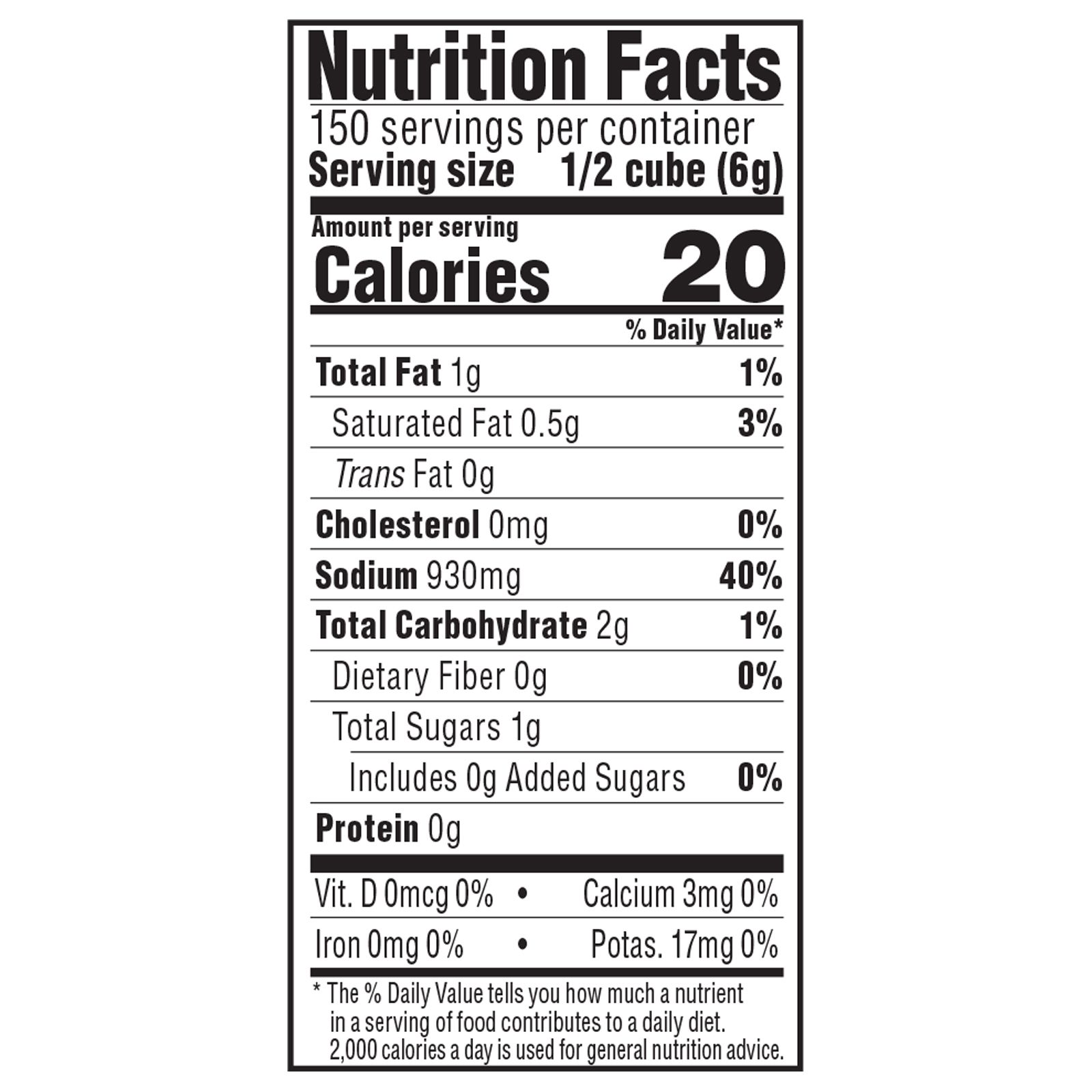 No Trans Fat or added MSG Each cube makes 2 cups of broth Rich in flavor, lower sodium than national brands Includes 75 bouillon cubes