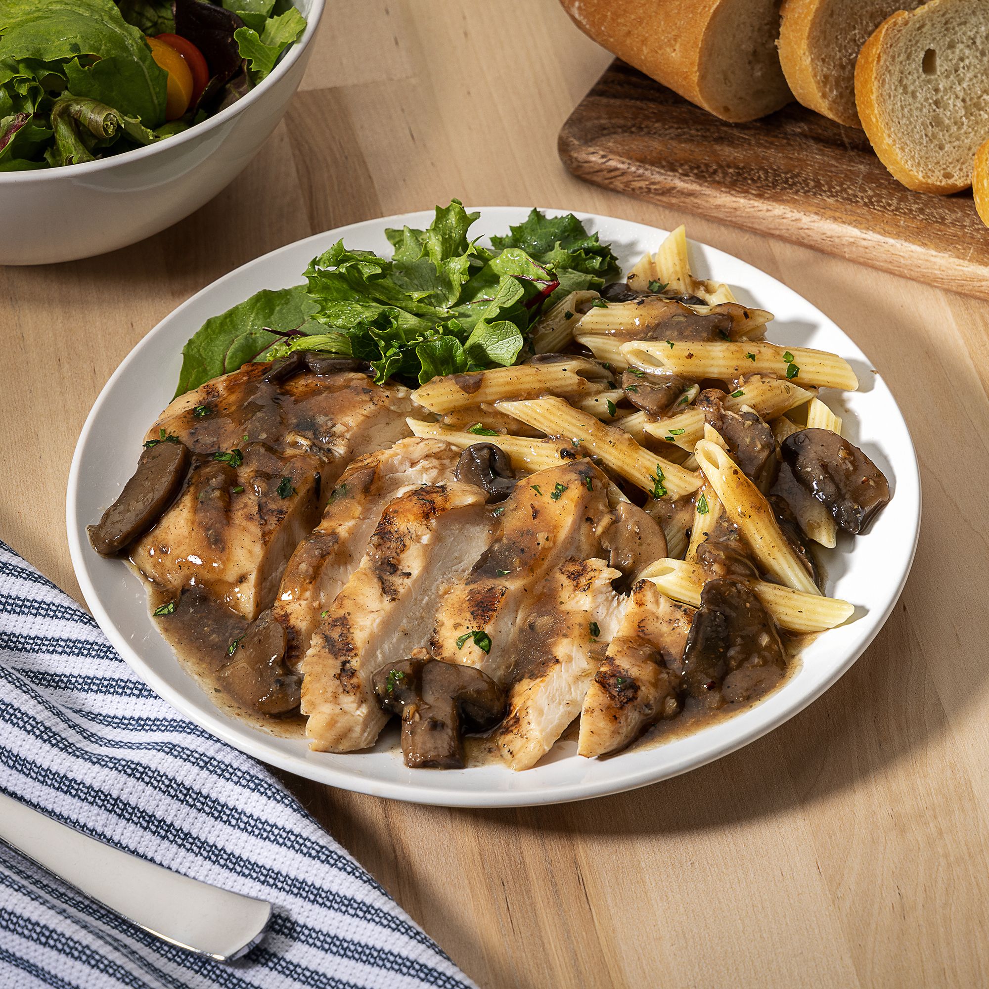Wellsley Farms Chicken Marsala has grilled boneless chicken breast in a rich and aromatic marsala wine sauce, with sliced Crimini mushrooms. This fully cooked meal is perfectly tender, juicy, and easy to prepare.