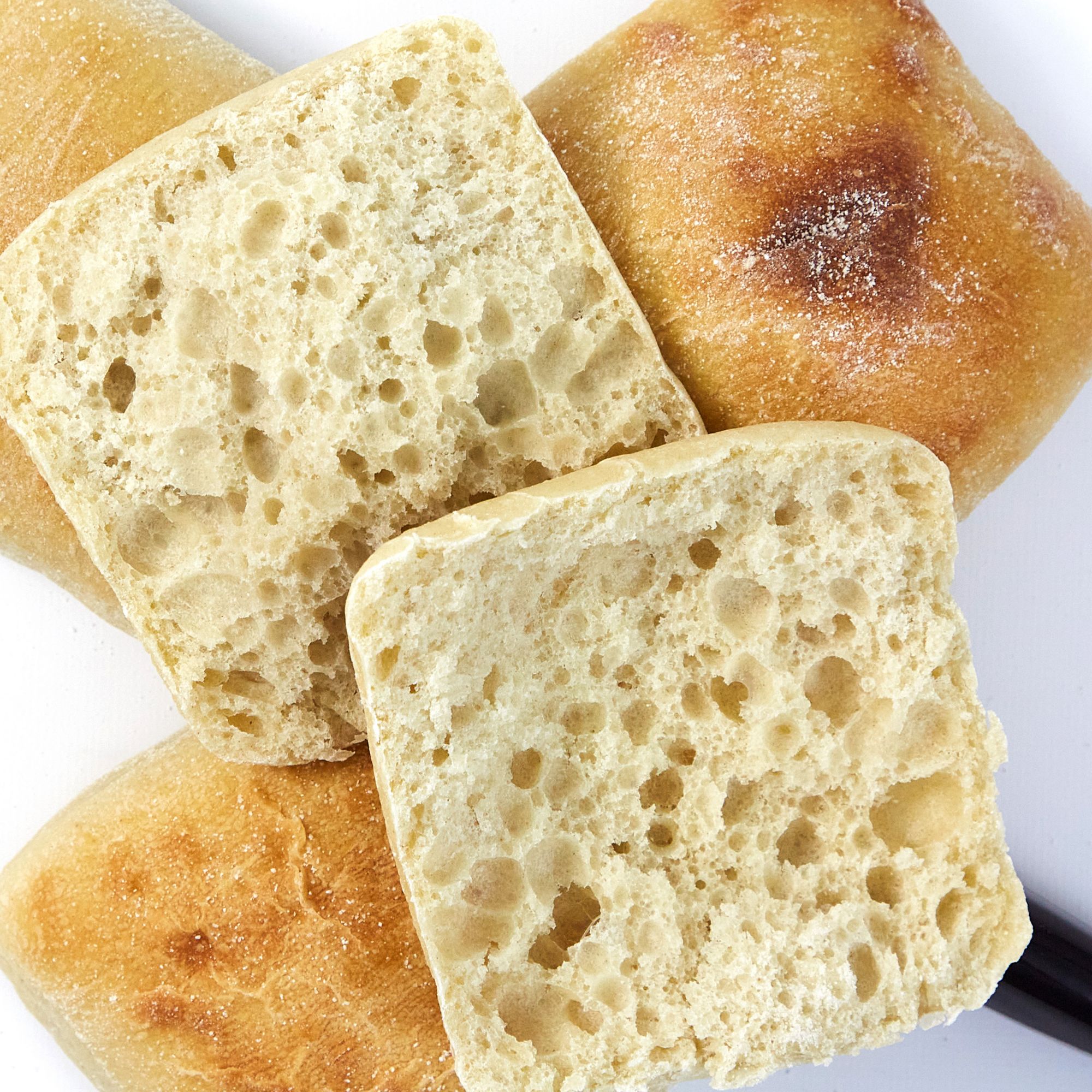 Wellsley Farms Ciabatta Rolls feature a crisp, chewy crust and a moist, porous interior. This sandwich roll boasts a subtle aroma of fresh olive oil. Warm it in the oven, slice and top with your favorite ingredients.