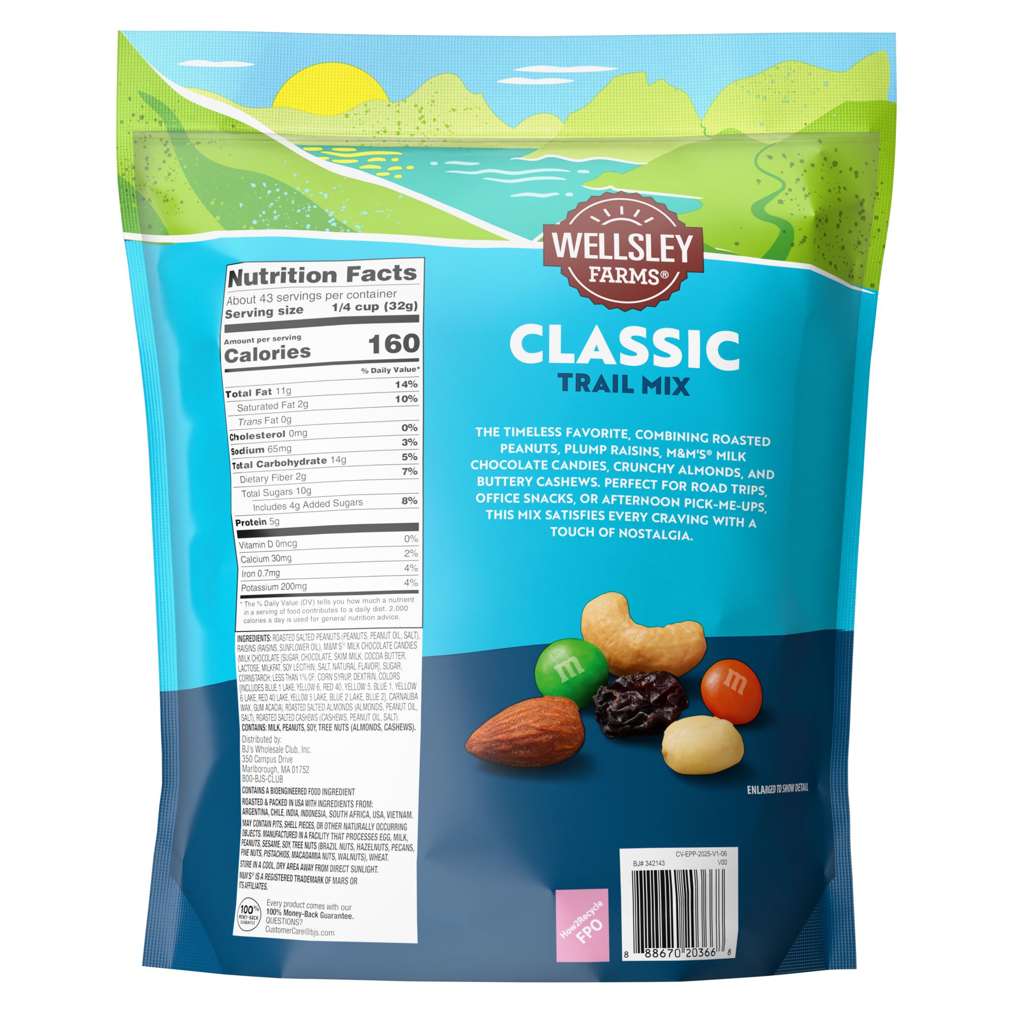 Enjoy the unbeatable taste and value of Wellsley Farms Classic Trail Mix, a member favorite praised as the best trail mix ever. This delicious snack combines a perfect mix of nuts, raisins, and M&M’s for a balanced sweet and salty flavor that’s both satisfying and energizing. Loved for its great quality, excellent price, and fresh ingredients, this mix is ideal for healthy snacking, school lunches, or a quick energy boost during busy days. Whether you’re at home, at work, or on the go, this classic trail mix is the perfect protein snack for any occasion. With its great taste, awesome variety, and bulk-sized value, it’s no wonder members say they can’t keep it on the shelf. Make it your go-to snack for family gatherings, road trips, or just a guilt-free treat anytime.