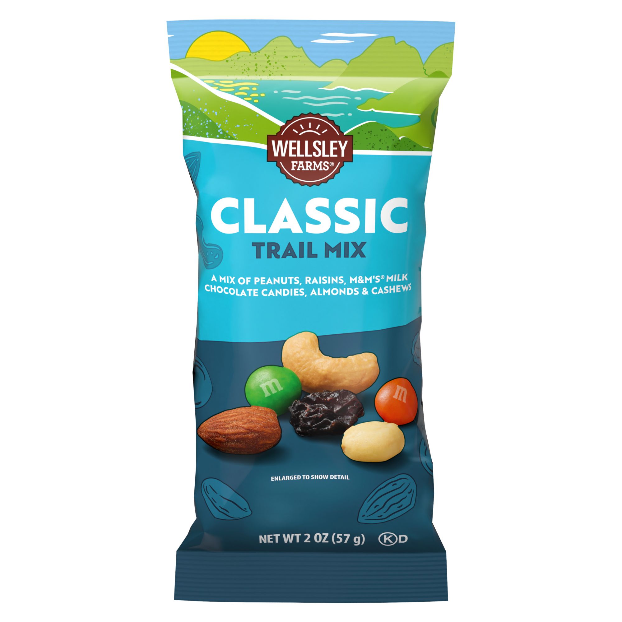 Snack smarter with Wellsley Farms Classic Trail Mix, the ultimate chocolate, dried fruit, and nut medley for families on the go. This perfect mix of nuts, raisins, and chocolate delivers a balanced sweet and salty flavor that’s both delicious and nutritious, a healthy and quick snack kids and parents love. Featuring M&M's chocolate candies, raisins, and crunchy nuts, it’s a fabulous hold-you-over treat for school, work, or travel. Packed in individually wrapped snack bags, this household favorite snack is ideal for lunch boxes, school snacks, or a pick-me-up snack anytime. Whether you’re heading out for a hike, need an easy snack for kids, or want a handy treat for busy days, this awesome goodness is the best trail mix ever—highly recommended for families who want a tasty and healthy snack that satisfies every craving.