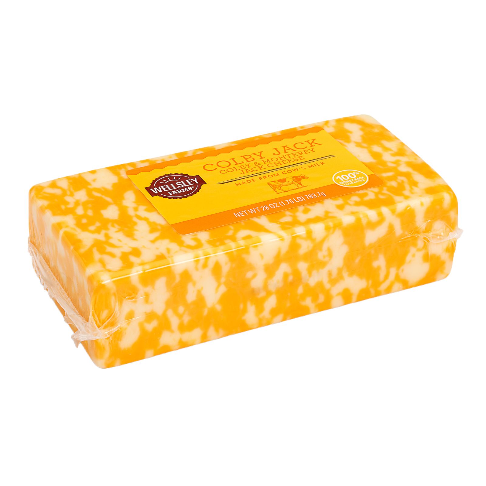 With fusion food becoming more popular by the minute, it's a natural fit to blend together the best flavors, textures and colors of Colby and Monterey Jack cheeses. The result? Wellsley Farms Colby Jack cheese, a colorful and flavorful combination of the best of both cheese. The marbled orange and white colors add interest to cheese platters and taste and look delicious served with fresh greens on whole grain or pumpernickel bread.