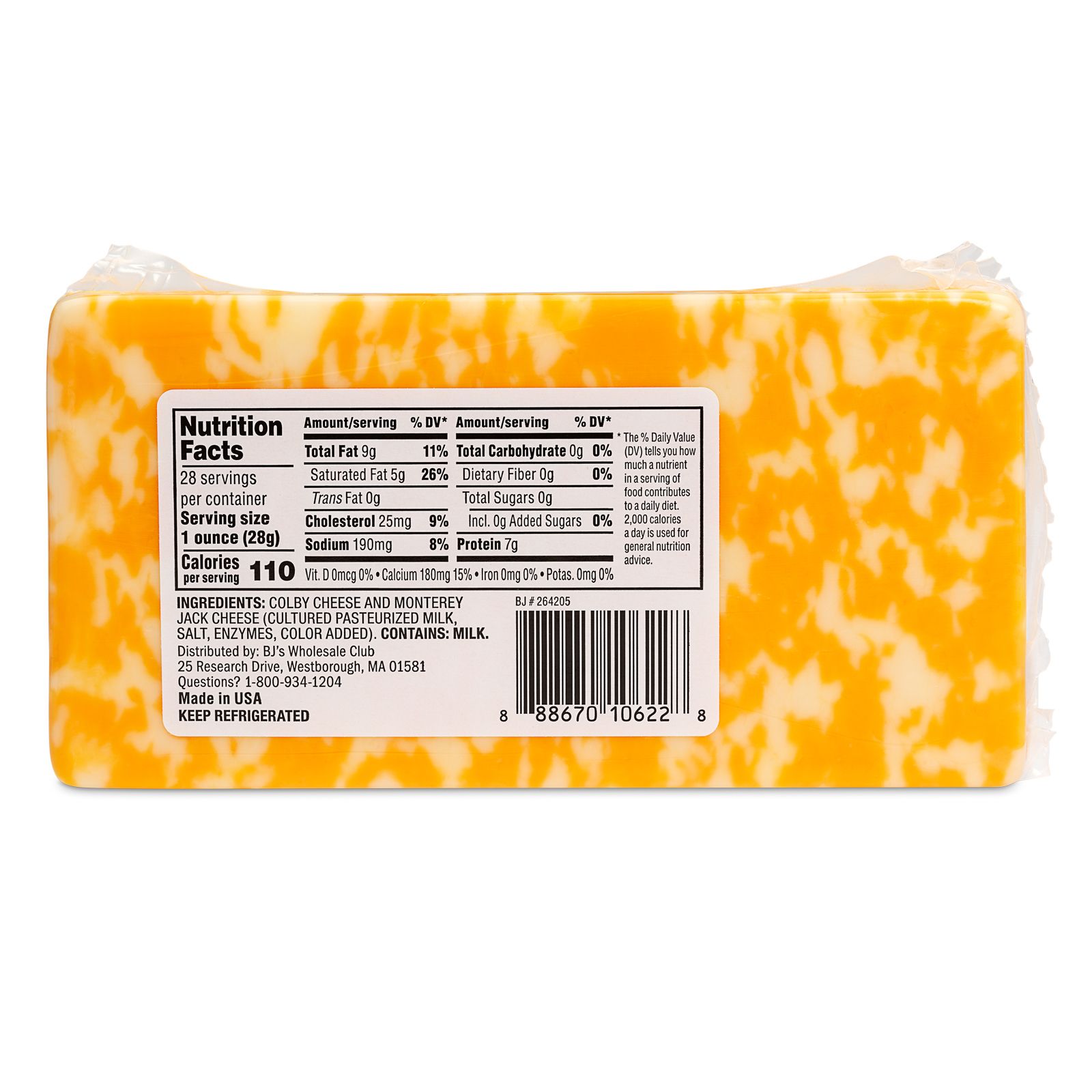 Ingredients: Colby Cheese and Monterey Jack Cheese (Cultured Pasteurized Milk, Salt, Enzymes, Color Added).