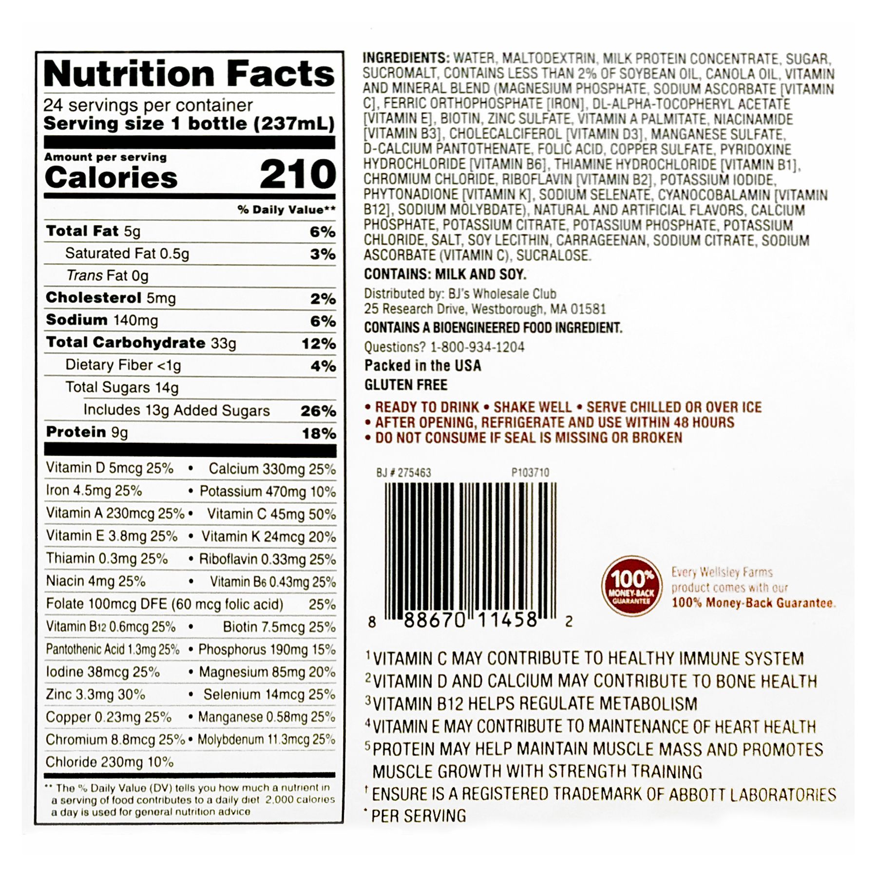 Good Source of 27 Vitamins and Minerals with 9g of protein. Easy to have as an on to go nutritional drink or an at home base for smoothies! A very versatile drink for many occasions that the BJ's Wholesale consumer can enjoy. Product is a 8oz Vanilla flavored drink that provides the consumer with Vitamin D, Calcium, Iron, Potassium, Vitamin A, Vitamin C, Vitamin E, Vitamin K, Thiamin, Biotin, Zinc, Magnesium, Niacin and many more. A great solution across a wide range of ages to support good health.