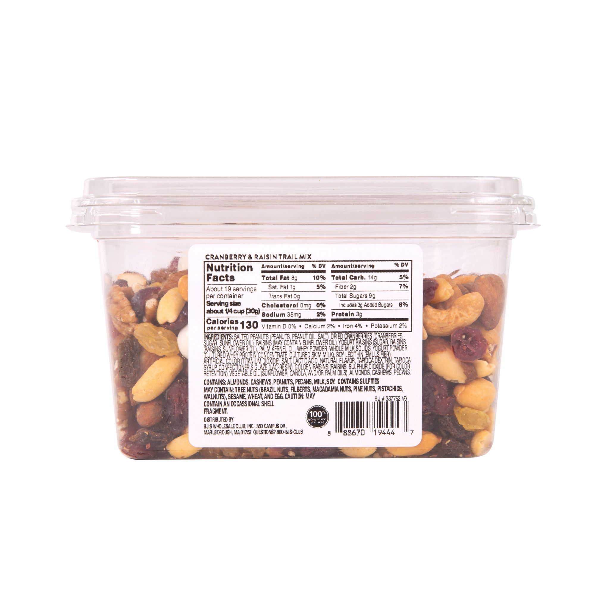 Ingredients: Salted Peanuts (Peanuts, Peanut Oil, Salt), Dried Cranberries (Cranberries, Sugar, Sunflower Oil), Raisins (May Contain Sunflower Oil), Yogurt Raisins (Sugar, Raisins (Raisins, Sunflower Oil), Palm Kernel Oil, Whey Powder, Whole Milk Solids, Yogurt Powder (Cultured Whey Protein Concentrate, Cultured Skim Milk), Soy Lecithin (Emulsifier), Artificial Color (Titanium Dioxide), Salt, Lactic Acid, Natural Flavor, Tapioca Dextrin, Tapioca Syrup, Confectioner's Glaze (Lac-resin), Golden Raisins (Raisins, Sulphur Dioxide (For Color Retention), Vegetable Oil (Sunflower, Canola, And/or Palm Oils), Almonds, Cashews, Pecans.