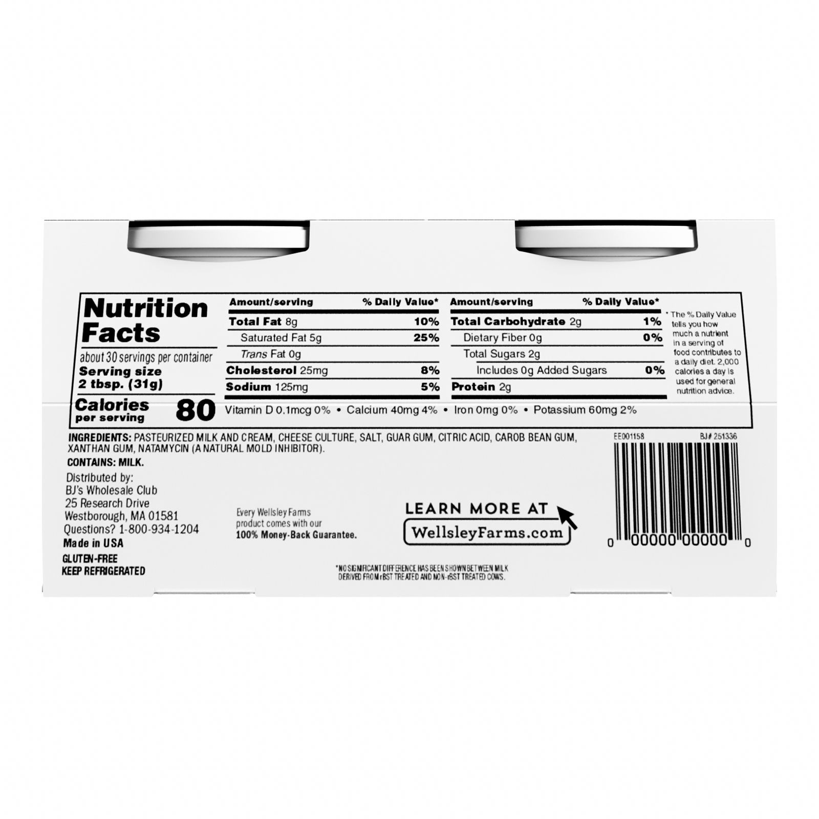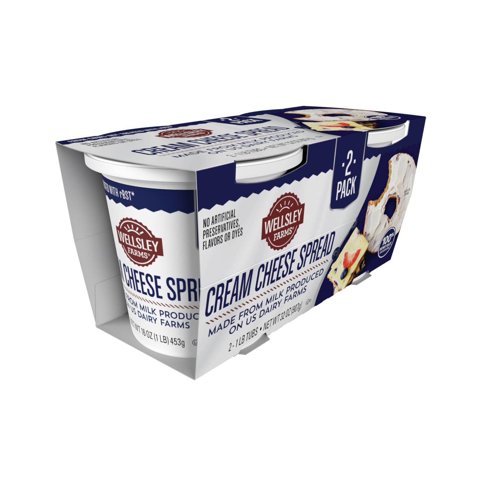 Wellsley Farms Cream Cheese Spread contains no artificial preservatives, flavors or dyes. The gluten free cream cheese contains zero grams of trans fat per serving. Made from milk produced on US Dairy Farms, this spread is a delicious choice for all of your cream cheese needs.