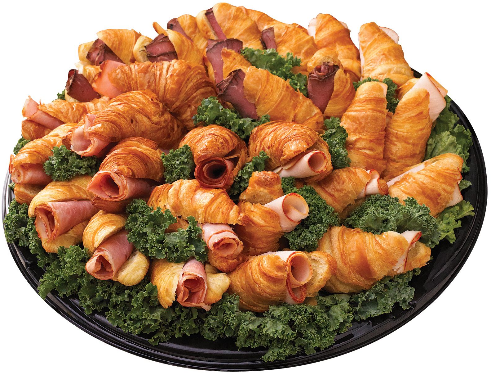 Platter serves about 10 to 15 people at parties and gatherings Meat options: Wellsley Farms roast beef, oven-roasted turkey and honey ham Soft croissant bread Includes 30 mini croissant sandwiches