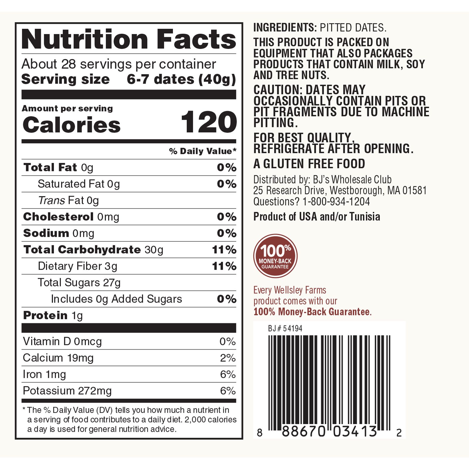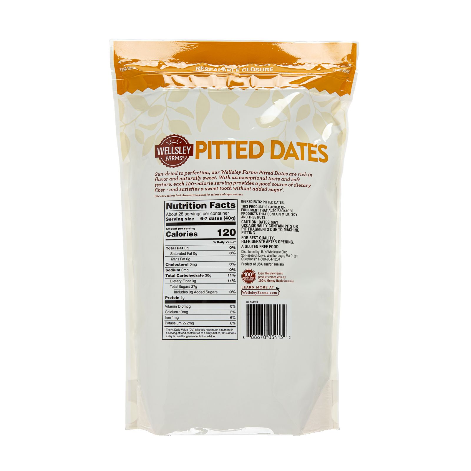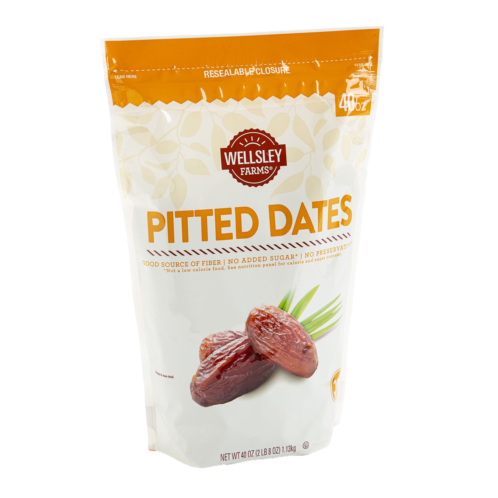 Can't get enough of Wellsley Farms 40 Oz. Dried Dates? Pop open the container and grab a handful of these dried, pitted dates. They're a naturally good source of fiber and contain no added sugar, so you can feel good about snacking on them or adding them to your favorite recipes.