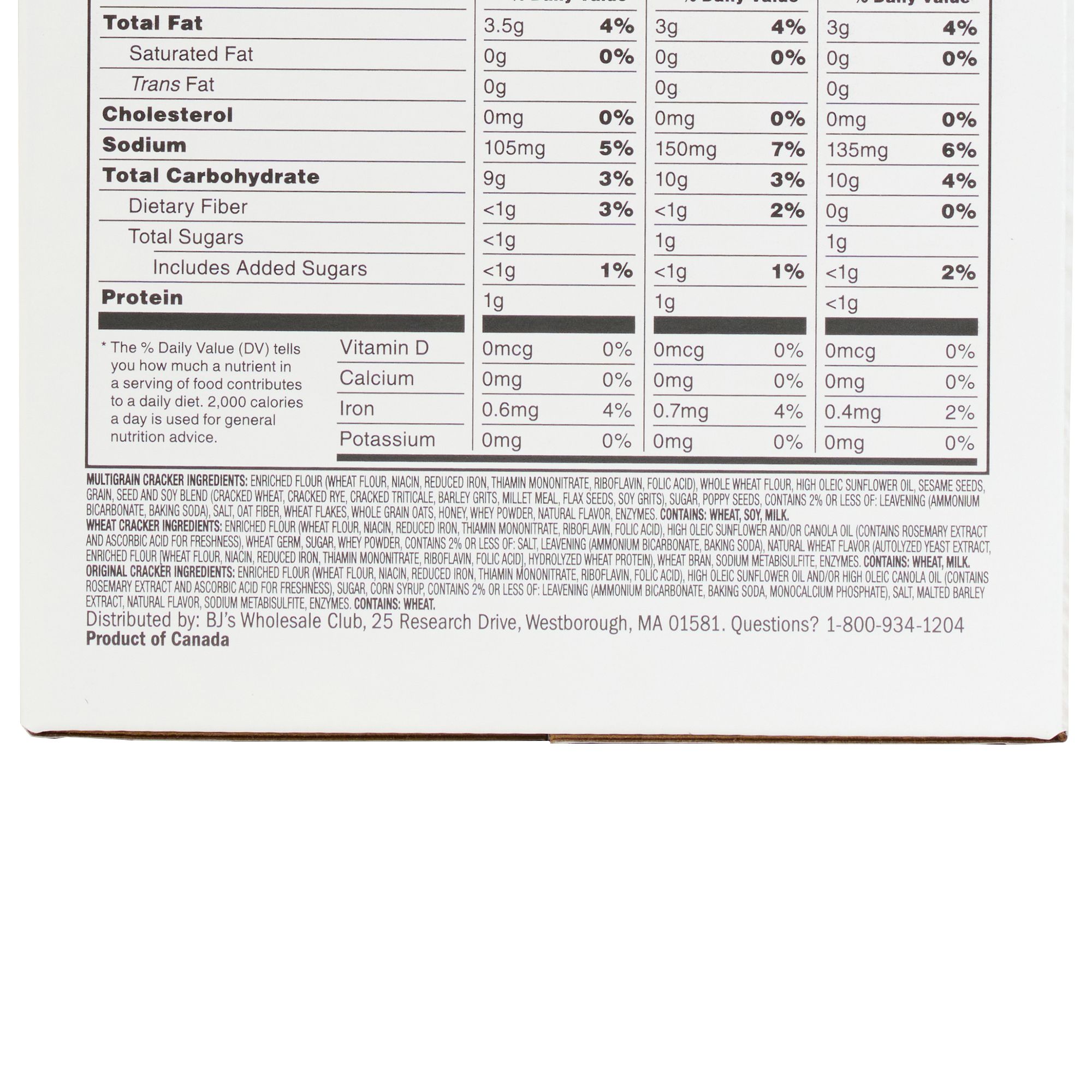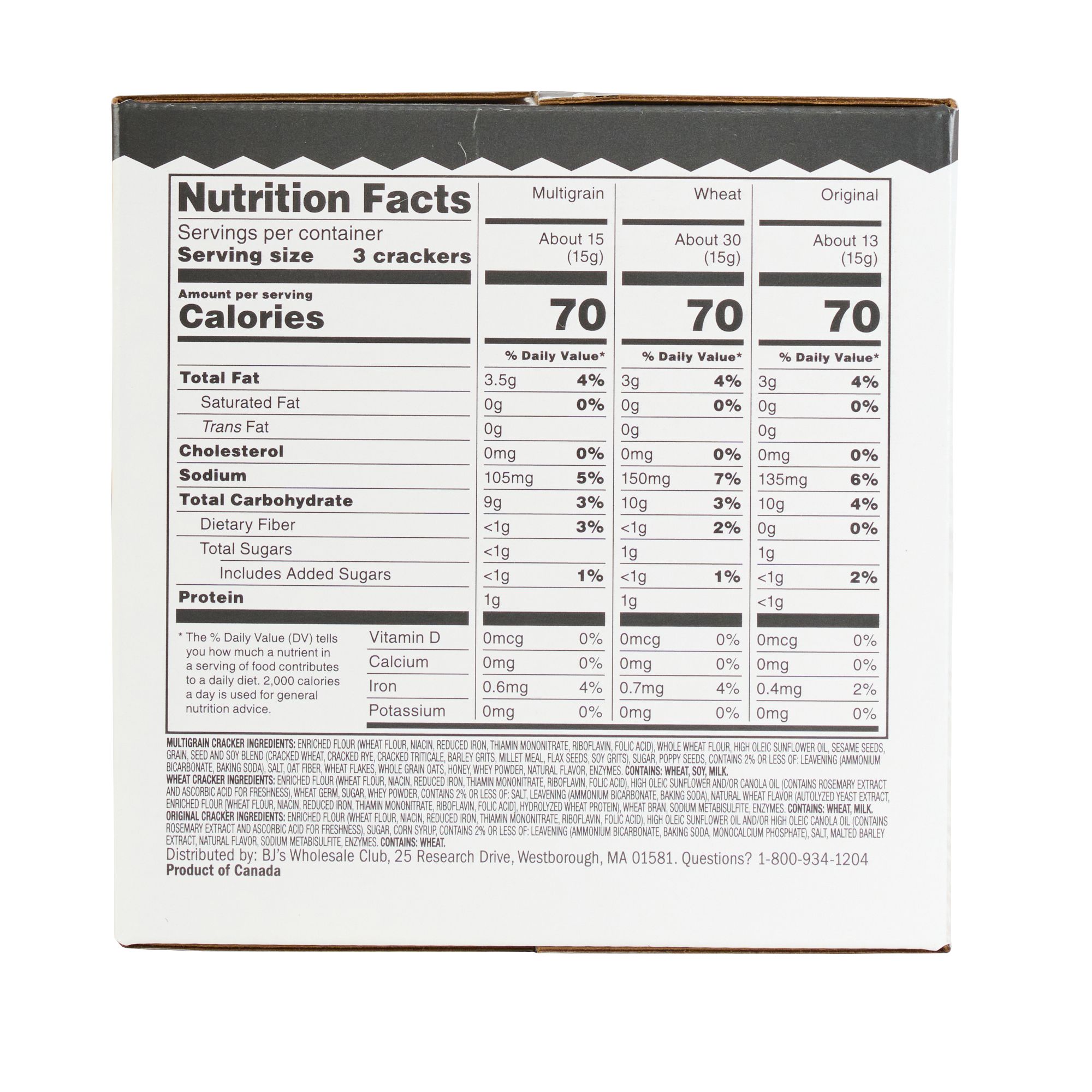 Includes 2 boxes of Original Wheat, 1 box of Crisp & Buttery and 1 Box of Multigrain crackers