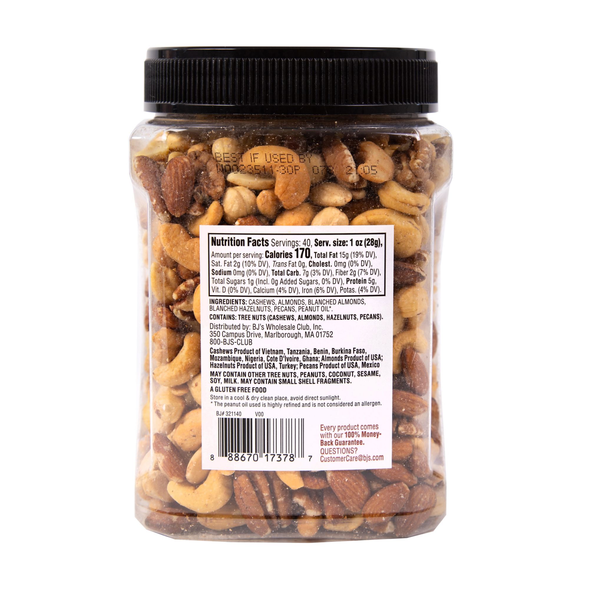 Includes salted mixed nuts, 40 oz.