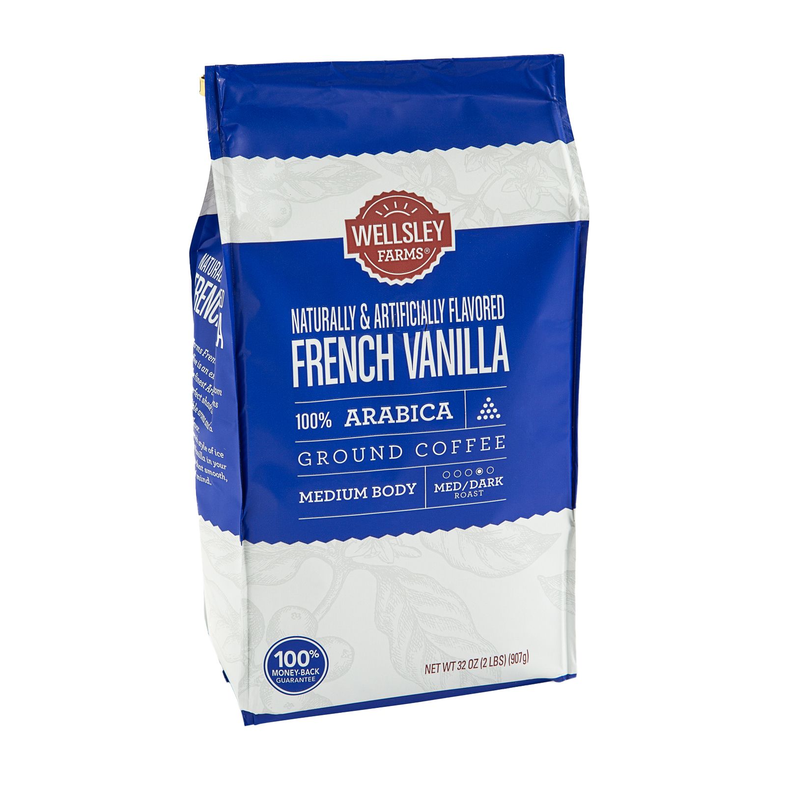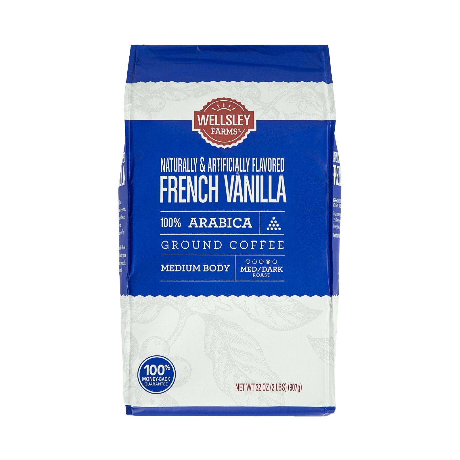 Inspired by the French style of ice cream, this Wellsley Farms 32 Oz. French Vanilla Ground Coffee fills your cup with a flavorful blend each day. The coffee is made with ground 100% Arabica beans with a medium-dark roast to suit your preferences.