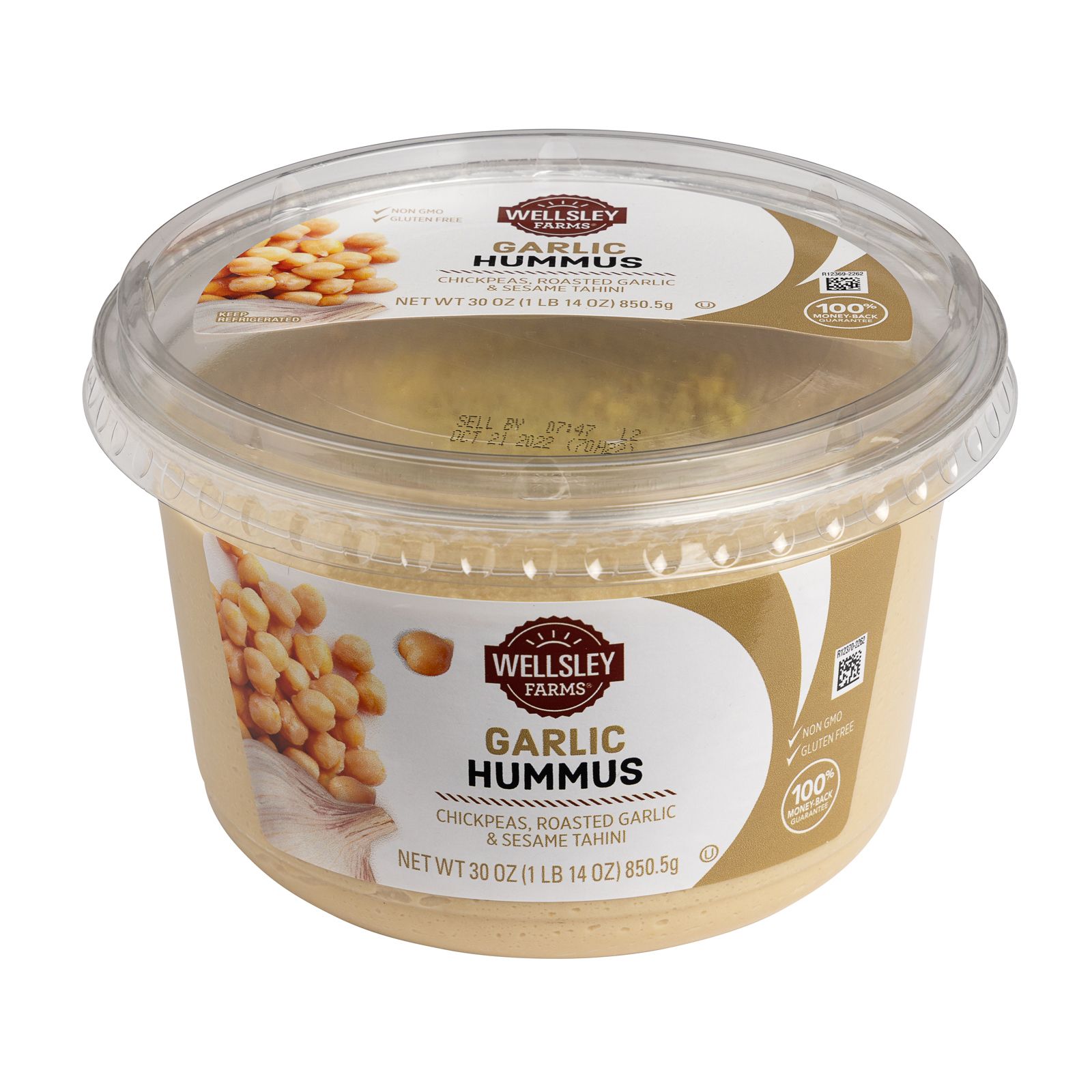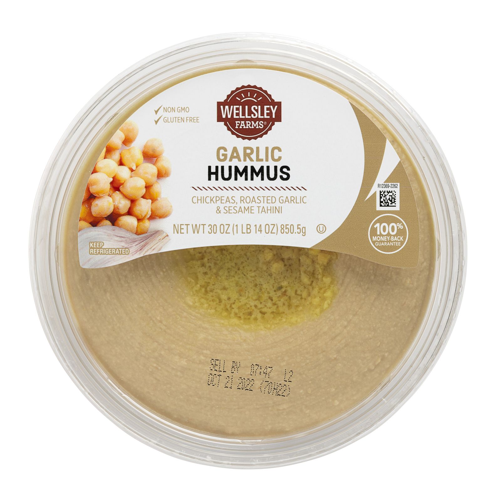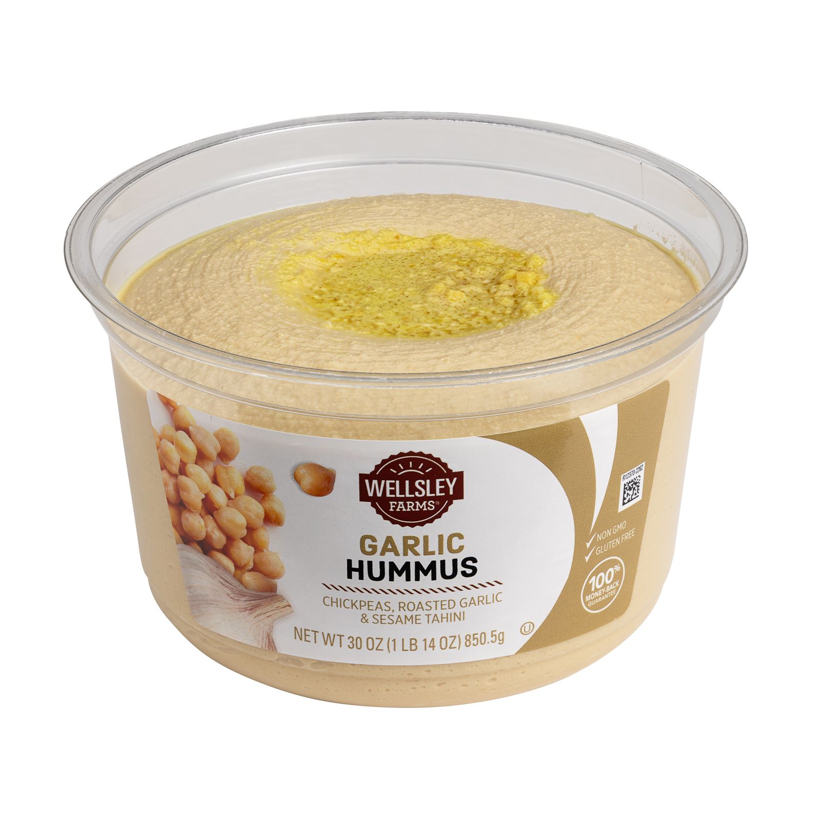 Wellsley Farms Garlic Hummus features roasted garlic, chick peas and tahini blended with a touch of sea salt.